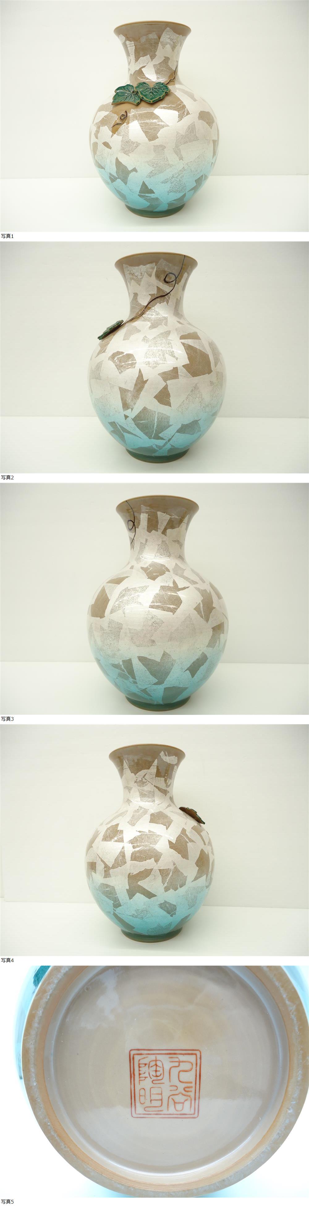 | 4265 骨董祭 九谷焼 銀彩 花瓶 伝統工芸品 インテリア 華 フラワーベース 花器 | ||||