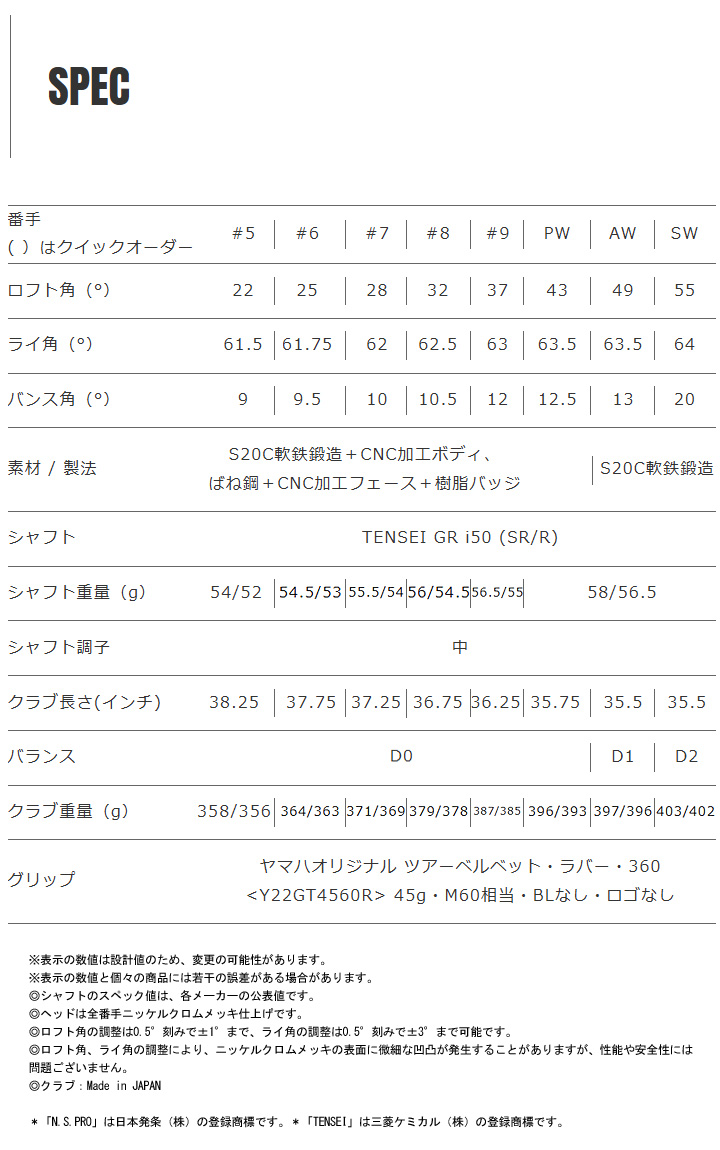 ヤマハ RMX DD-2 アイアン【単品(SW)/SR】シャフト:TENSEI GR i50 カーボン YAMAHA リミックス IRON 日本正規品 2026 40p 即納 收藏