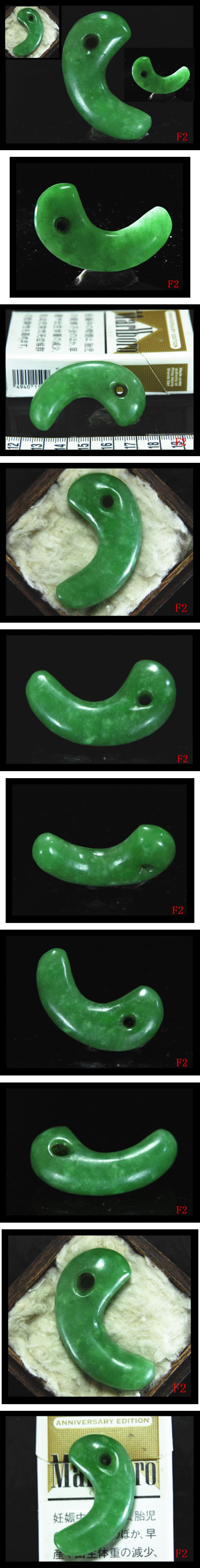 【F2】古墳期★透光性姿形抜群味わい深い濃翠緑色★極上ろうかん質硬玉翡翠製★極希少迫力コ字形勾玉★検★縄文出土器法具仏像原石 收藏