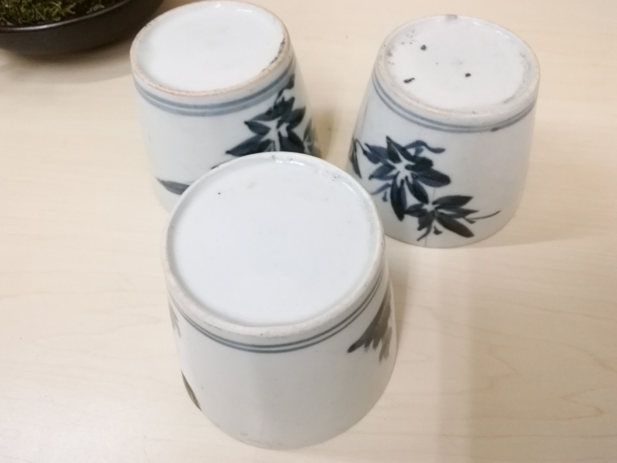 骨董 古伊万里 蕎麦猪口 染付 江戸期 器 アンティーク 年代物 3点まとめて B-557の出品になります。