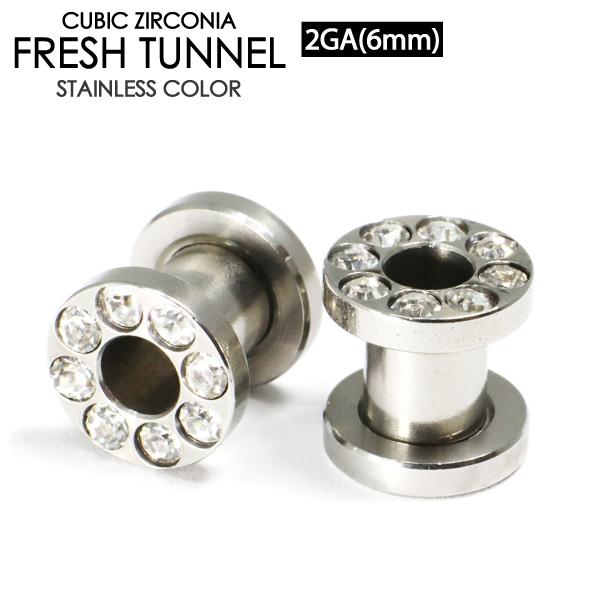フレッシュ トンネル ラインストーン仕様 2G(6mm) サージカルステンレス316L ボディーピアス ジュエル付 ゴージャス イヤーロブ 2ゲージ