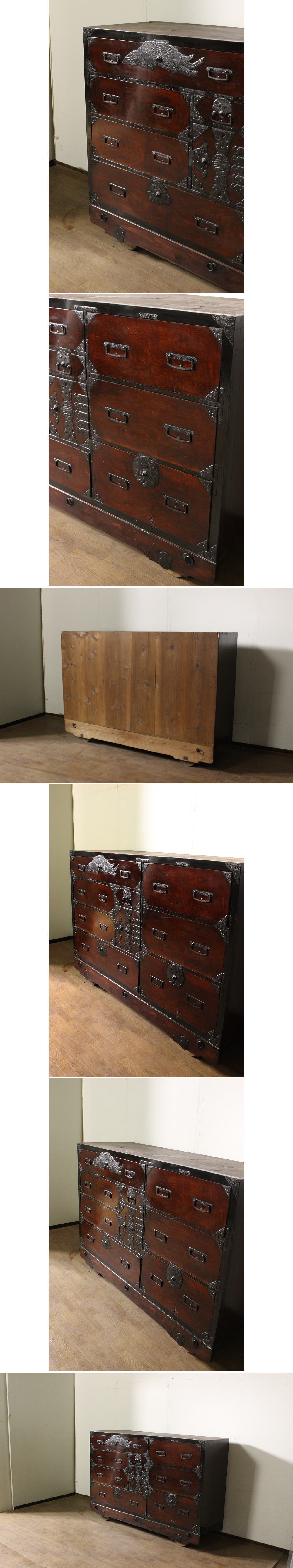 希少!欅杢!鳳凰・唐獅子金具!仙台・車箪笥 一間箪笥 時代箪笥/和家具/古民家/無垢材/カウンター/店舗什器/和タンス/古家具/引出 收藏
