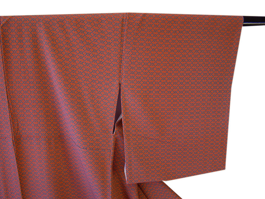 店舗改装セール!美品!裄65.2cm ジュサブロー 縮緬地 小紋 正絹 仕立上り 袷 152cm~158cm KK473 收藏