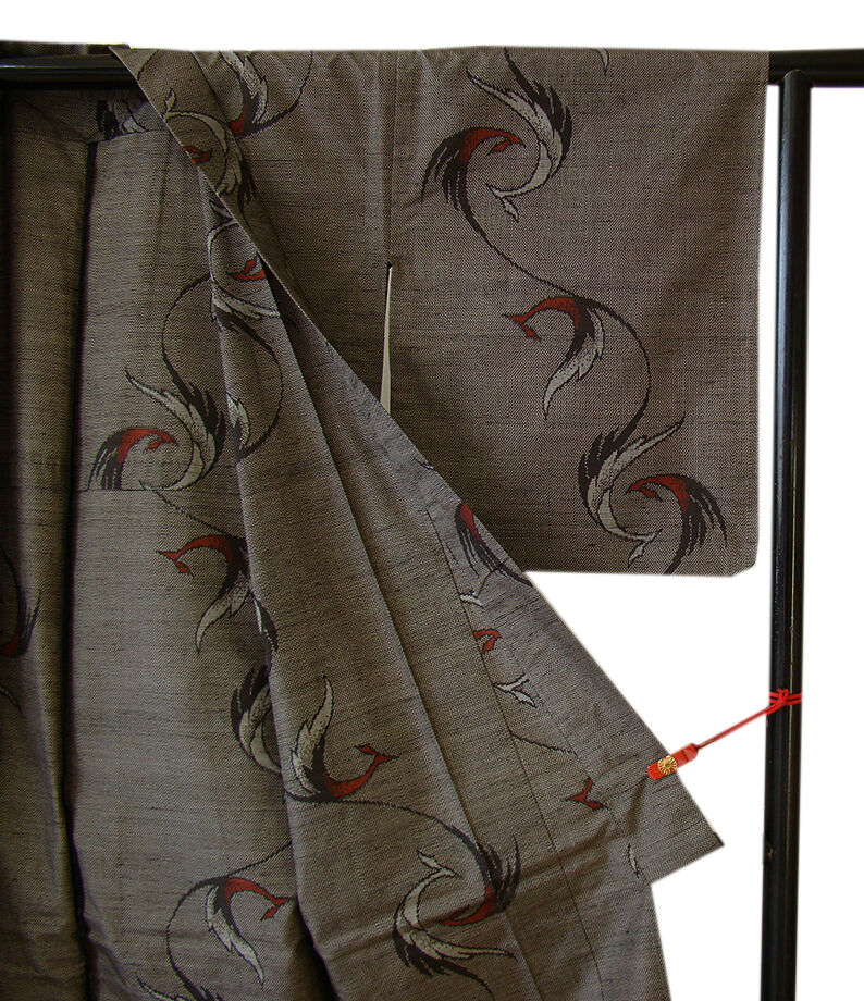 | 商品説明 | こちらのお品は「単衣」ですので5月、6月、9月にお召頂ければと思います。 着物には、大きく分けて「袷(あわせ)の着物」と「単衣(ひとえ)の着物」と「夏着物」があります。 反物(表地)を着物に仕立てるときに、裏地類をつけるものを袷の着物、 つけないものを単衣の着物と呼び、胴裏や八掛といった裏地がつかない一枚ものの着物です。 また裏地がないため、座る時などにヒップのラインが目立たないよう、 居敷当て(いしきあて)の生地をつけることもあります。 居敷当ては付いておりません。 しなやかなさらりとした風合いが着心地良い単衣の紬地、 こげ茶色地に灰白、赤色の織柄となっております。 |
