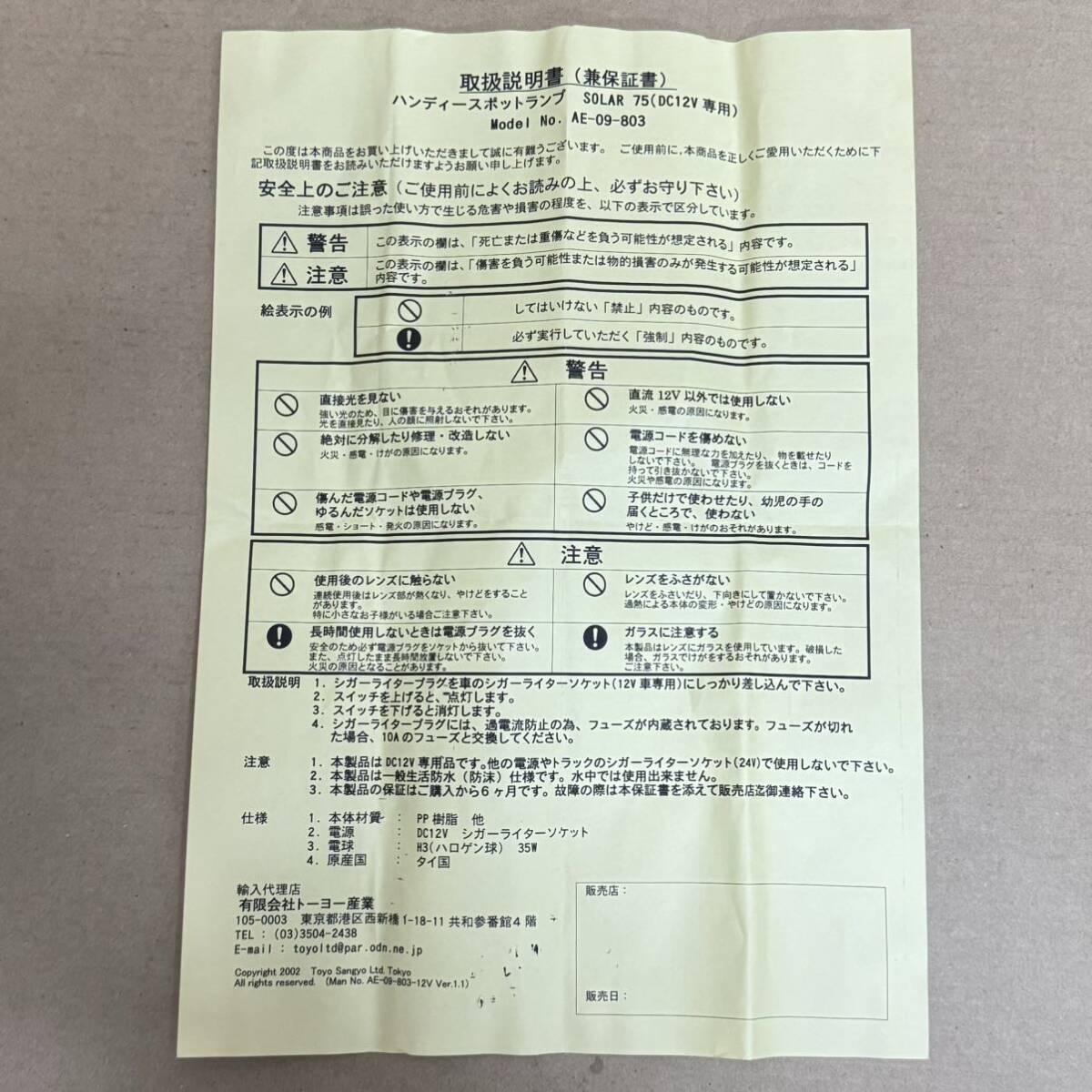 中古 FITT製 ハンディースポットランプ SOLAR 75(DC12V専用) AE-09-803 SHSH0156-1c 收藏