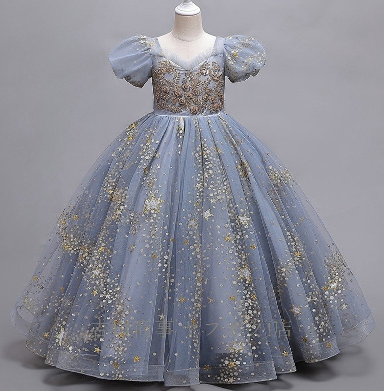 A6419☆新品フォーマル ドレス ロングスカート 女の子 ガールズ オシャレ 半袖 ワンピース 発表会 演奏会 結婚式 演出服 收藏