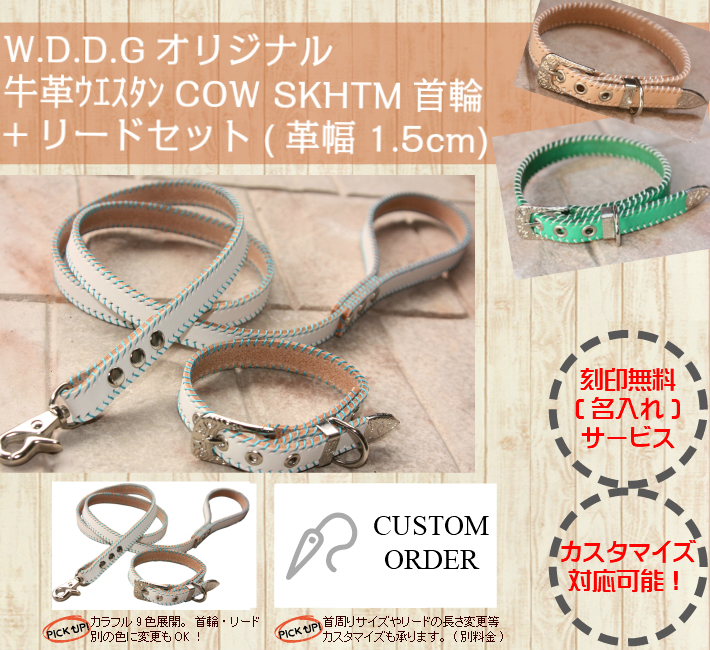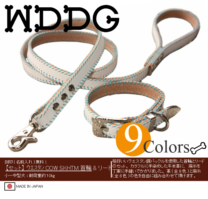 犬 革 首輪 リードセット 名前入り 本革 ウエスタン COWCOW SKHTM リード 首輪セット 小型犬 ~ 中型犬 犬首輪 レザー 牛革/ 收藏