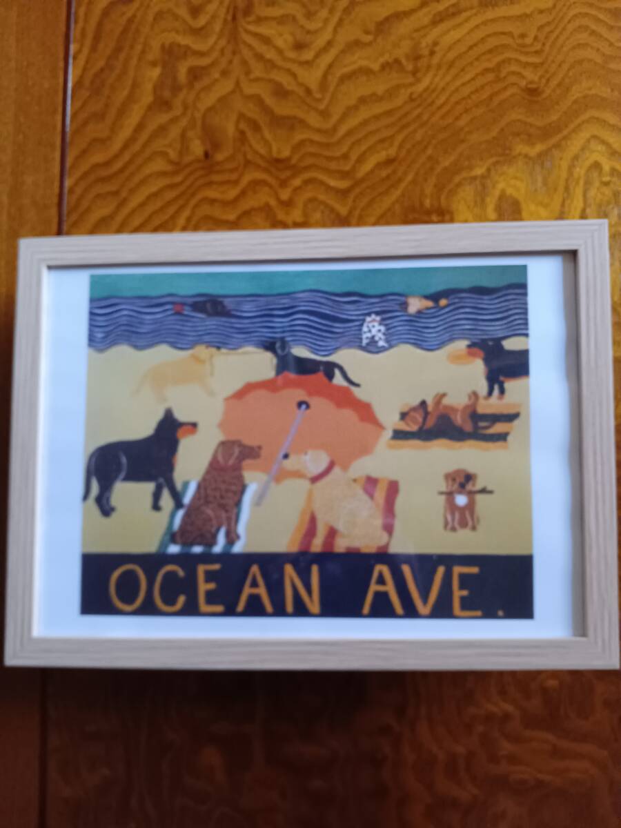 アメリカン雑貨ビンテージ希少ポスター 愛犬のバカンス 海岸線 ドッグビーチリゾート サマータイム 複製 A4額付き 送料無料 收藏