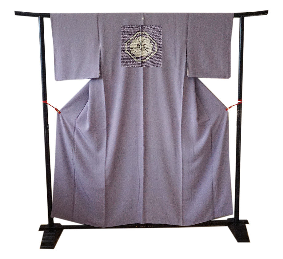 商品説明 | こちらのお品は袷ですので10月から5月までお召頂ければと思います。 しなやかな重厚感際立つぽってりとした重めのちりめん地で着心地の良いものです。 上品な藤紫色の無地着尺、 共八掛(正絹)、背には「八角に剣片喰」の紋が1ヶ入っております。 |