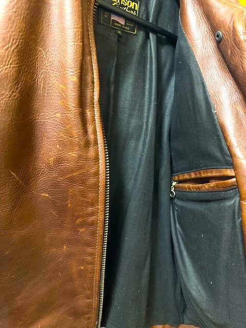 素人採寸ですが総丈62 肩幅44 袖丈65 身幅平置き50まだまだ革がしっかりしています| 出价者 | 信用 | 价格 | 时间 |