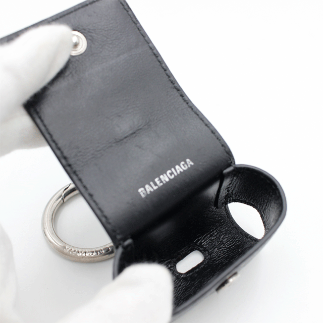 バレンシアガ BALENCIAGA EarPods ホルダー グレインカーフ ブラック・ホワイト プリントロゴ 6555579・1090 收藏