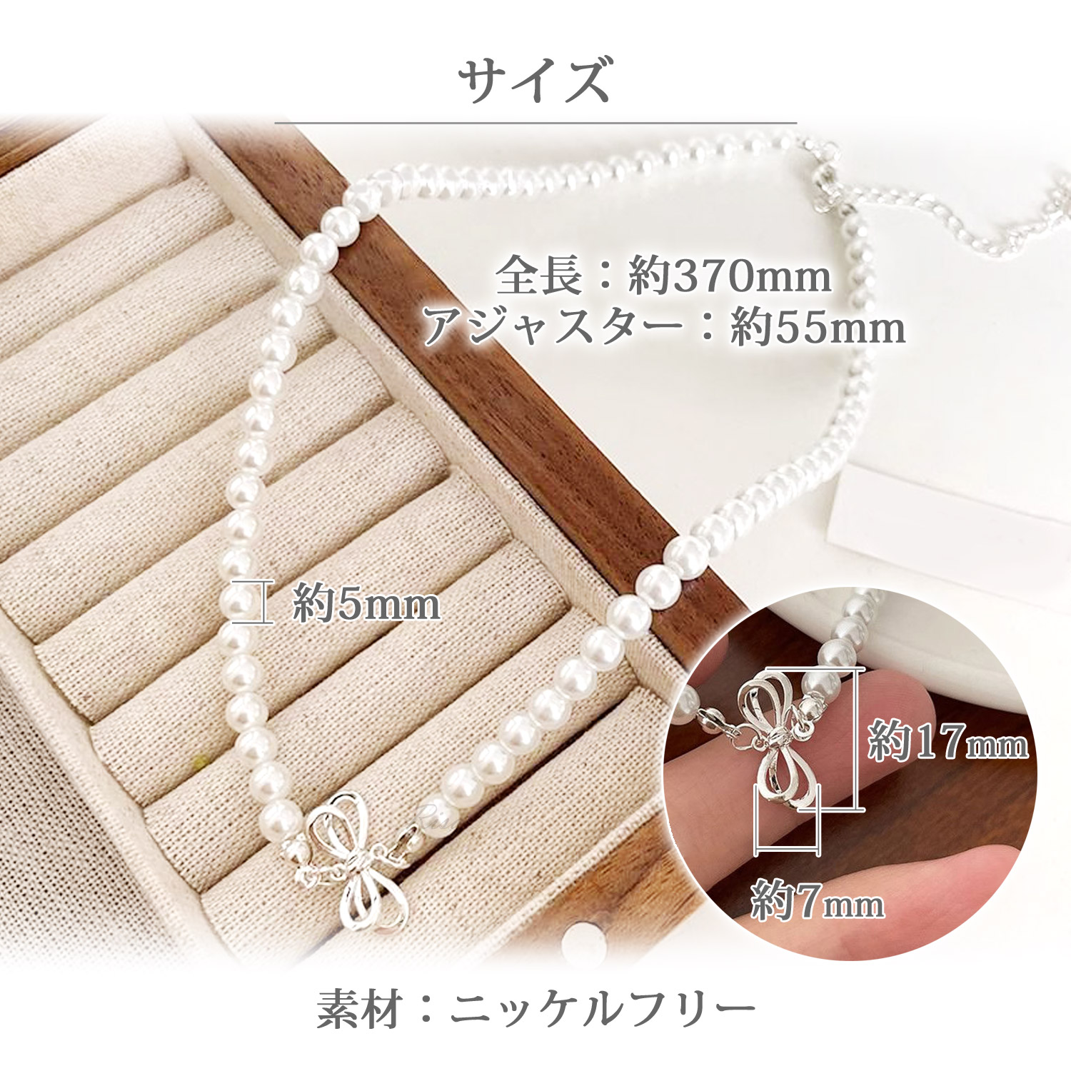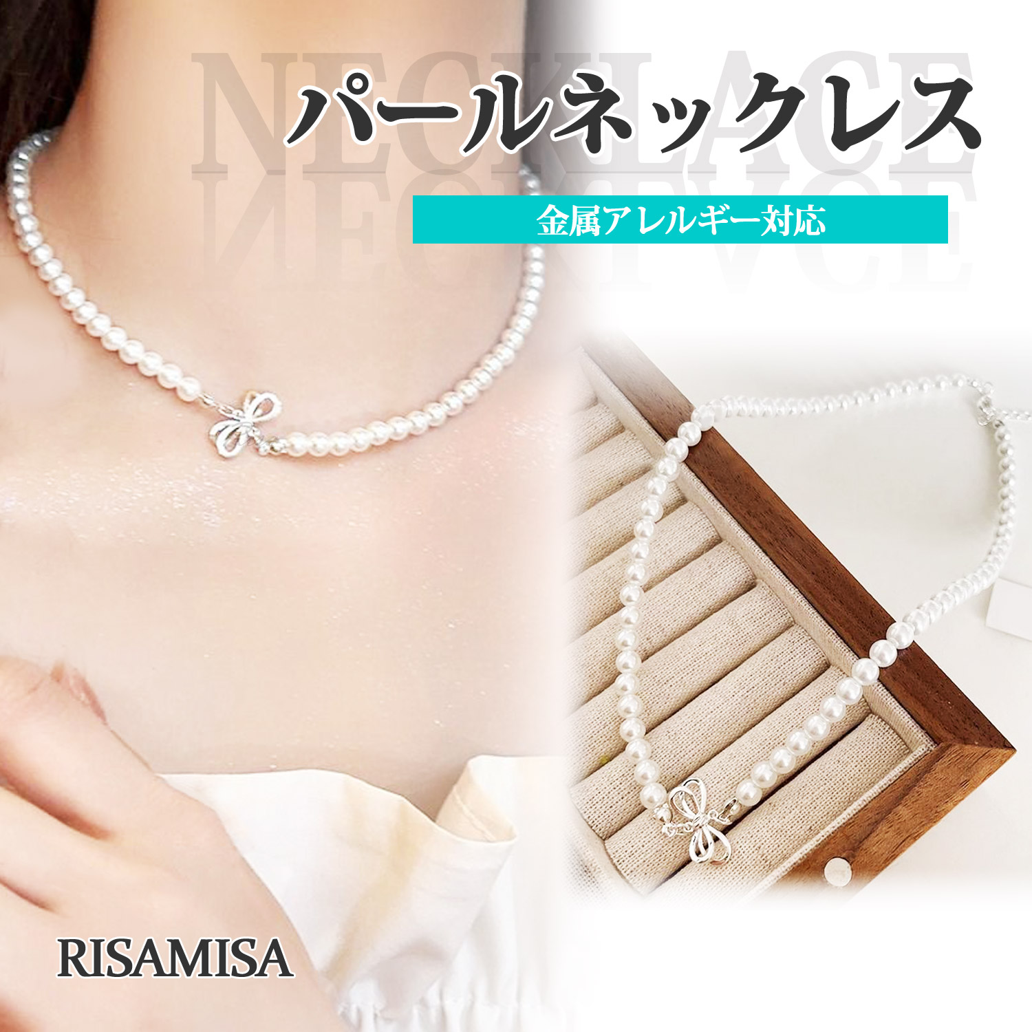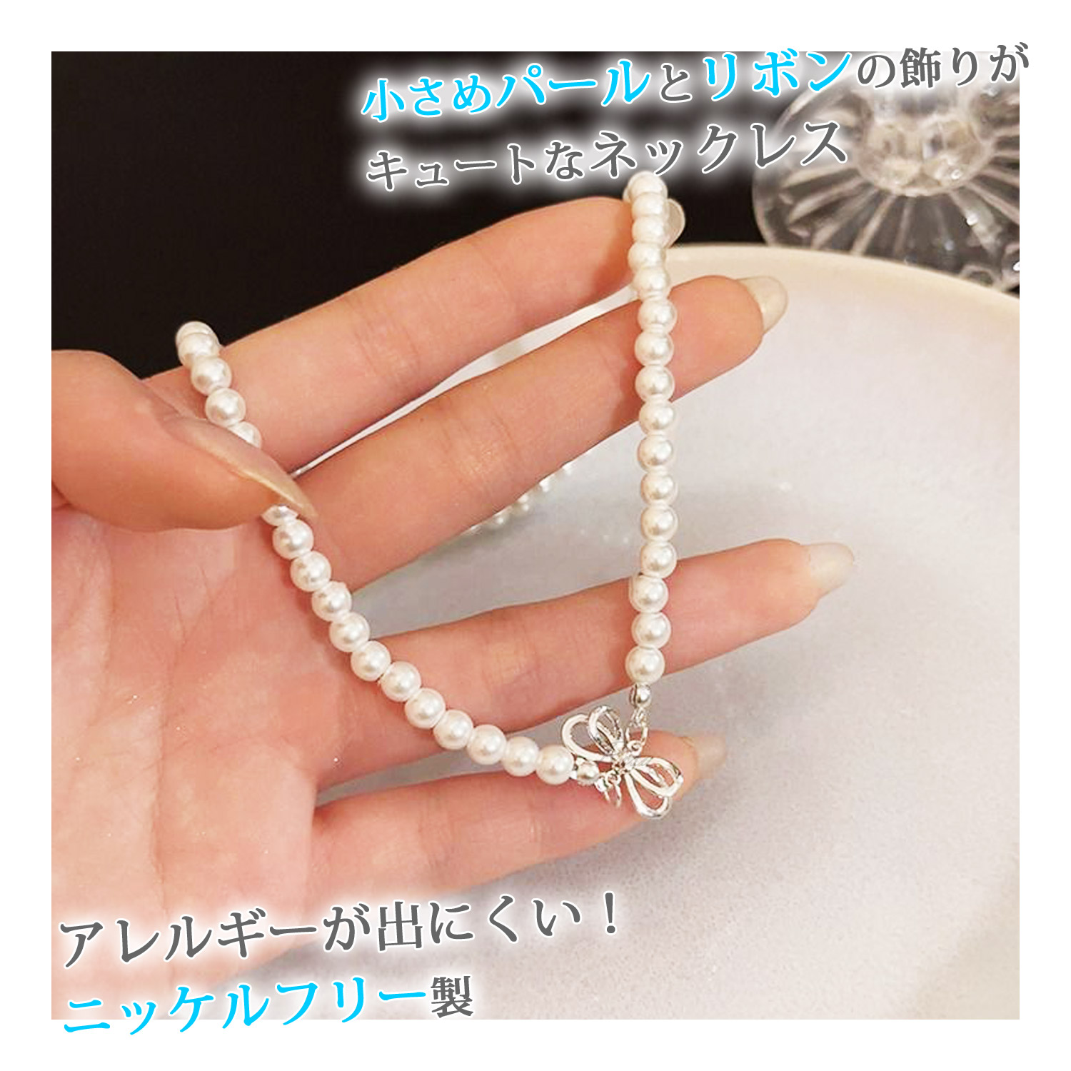ネックレス フェイクパール 金属アレルギー対応 リボン ニッケルフリー レディース 可愛い シンプル お洒落 綺麗 收藏