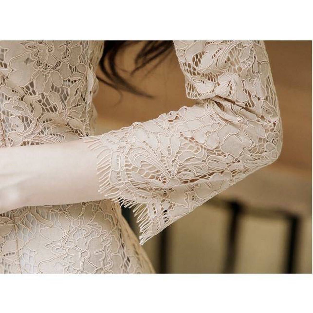 レディースワンピース 総レース ホルターネック 長袖 七分袖 膝丈 ロング丈 美ライン 細見え セクシー Sサイズ Mサイズ Lサイズ 收藏