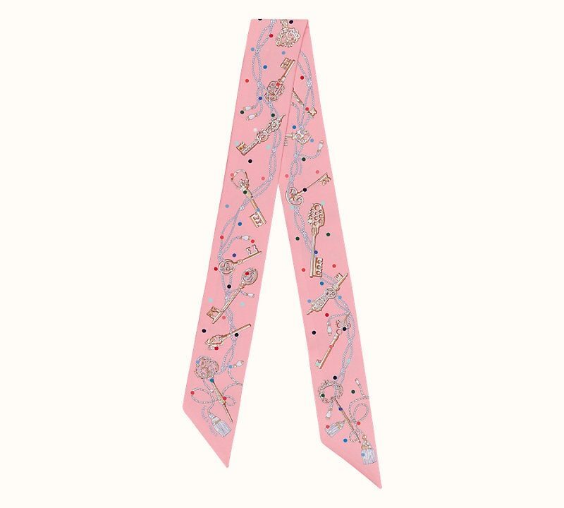超人気 新品 送料無料 エルメス ツイリー クレ ア ポア ピンク レア スカーフ キー HERMES Twilly Les Cles a Pois Key pink NEW 收藏