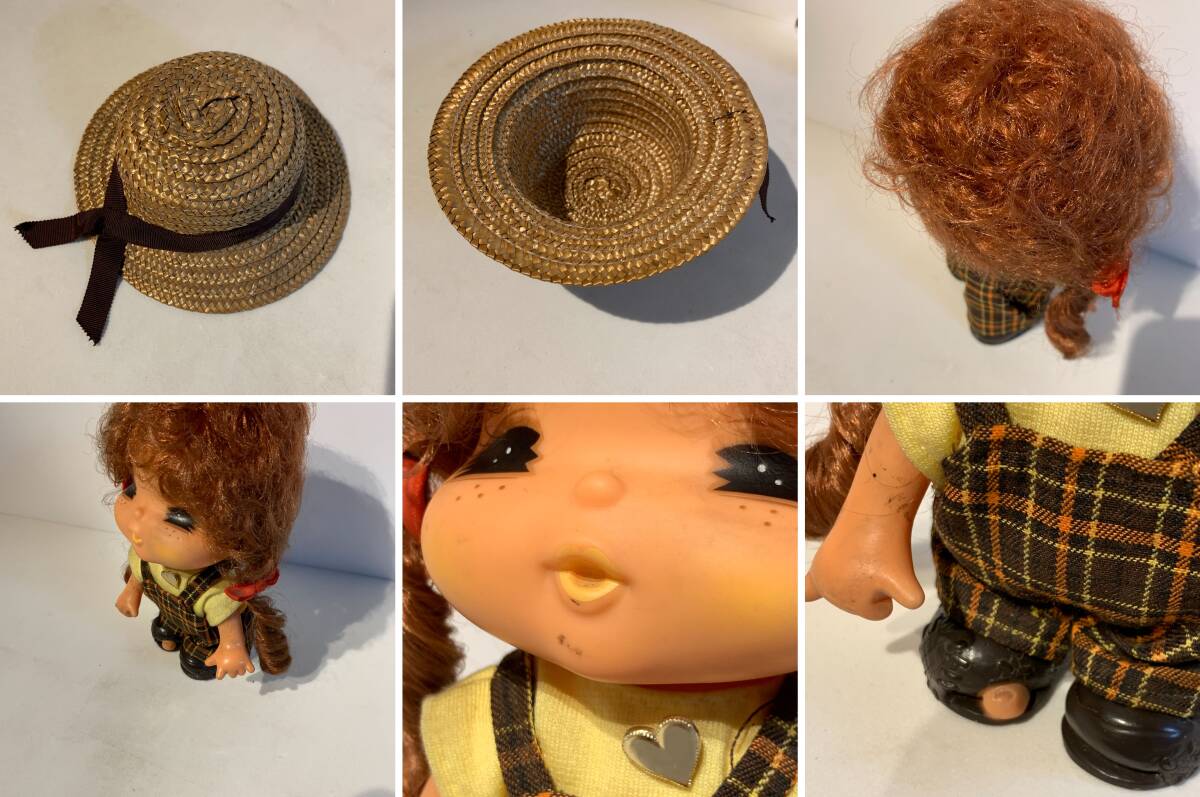 当時物 ぼろ靴クックちゃん FUJISANGYO 麦わら帽子 ソフビ 人形 ドール 置物 昭和レトロ オーバーオール チェック柄 ファンシー メルヘン