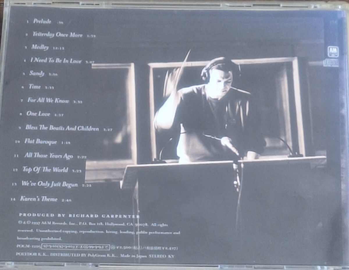 | ■CD(POCM-1205)/解説付国内盤◆ リチャード・カーペンター/ Richard Carpenter ◆ 1997年『Pianist - Arranger - Composer - Conducter』 ※1970年の初来日からほぼ25周年となるカーペンターズの◆ リチャード・カーペンター/ Richard Carpenter ◆が 1997年にオーケストラとの共演で完成させた Carpentersナンバーのインスト・アルバム 『Pianist - Arranger - Composer - Conducter』です。 ※日本では1995年からCsrpentersのリバイバル大ブームが発生し、 新編集ベストアルバムがミリオン・セラーを記録する最中でリリースされた国内盤CDです。