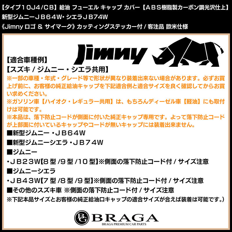 タイプ10J4/CB/給油 フューエル キャップ カバー/ABS製/カーボン調/光沢/新型ジムニー サイロゴマーク ステッカー付/客注品/ブラガ 收藏