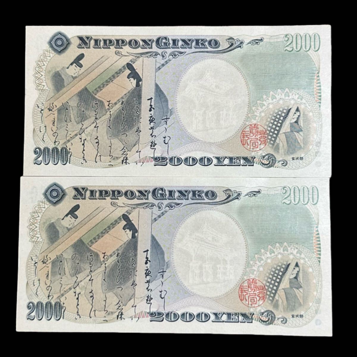 弐千円札 守礼門 源氏物語絵巻 紫式部 ピン札 二千円札 2000円札 日本銀行券D号 2枚連番 アルファベット1桁 連番X302566Z~X302567Z 未使用 收藏