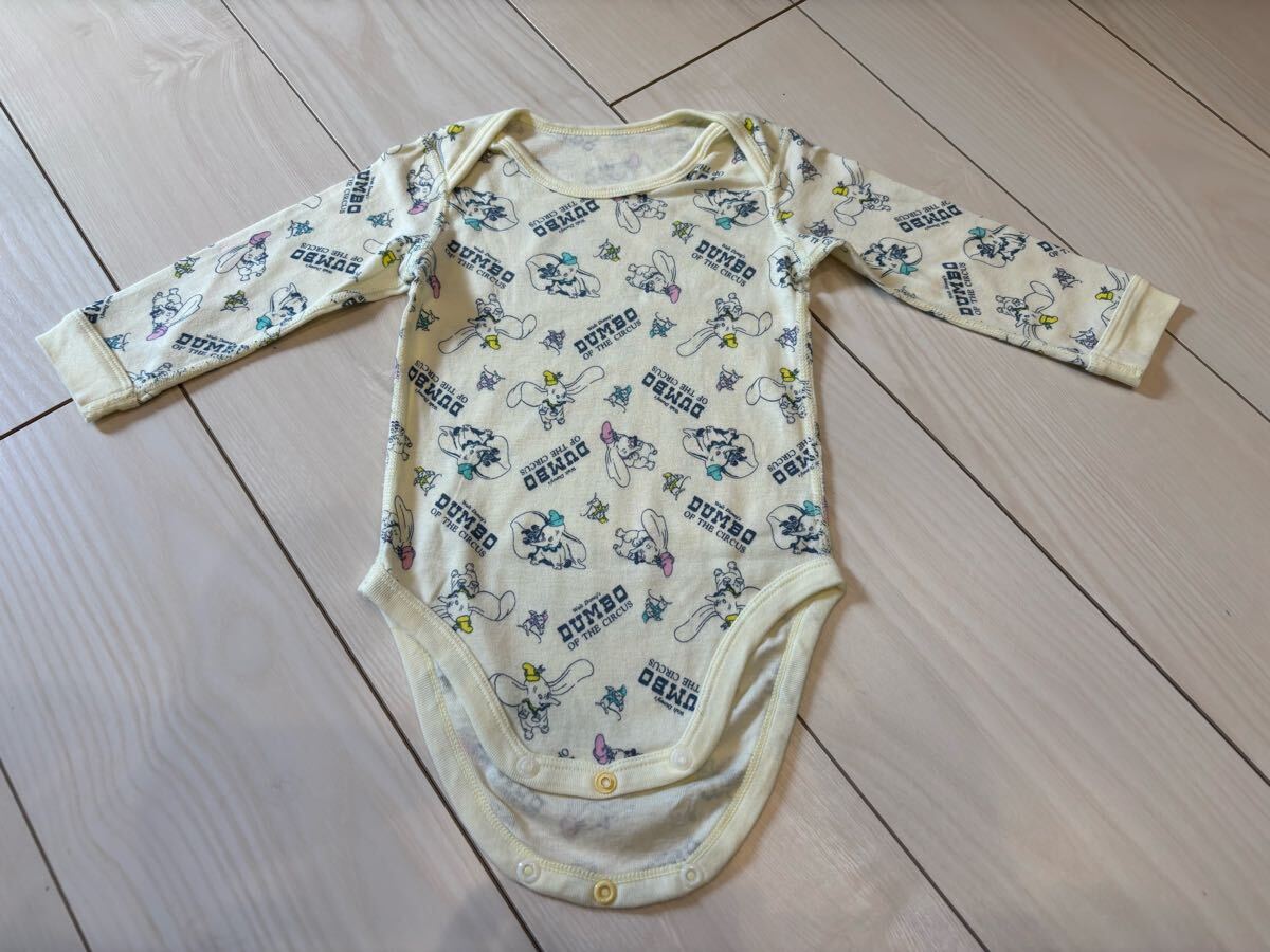 ☆ブランド・・・ユニクロ ☆お色・・・淡い黄色にネイビーのプリント ☆サイズ・・・80サイズ程度 平置きの状態で、身幅・・・24cm 着丈・・・38cm 袖丈・・・24cm です。 素人寸法ですので参考程度にお考え下さい。 ☆タグはありません。 ☆肌触りが良く、程よい厚みのあるなめらかな素材のロンパース肌着です。 ☆目立った痛みはありませんが、多少の色褪せ、生地の馴染み等があるかと思います。 ご理解の上ご入札下さい。 細かいことをお気にされる方、神経質な方は入札をご遠慮下さい。 ☆自己紹介も必ずお読み下さい。