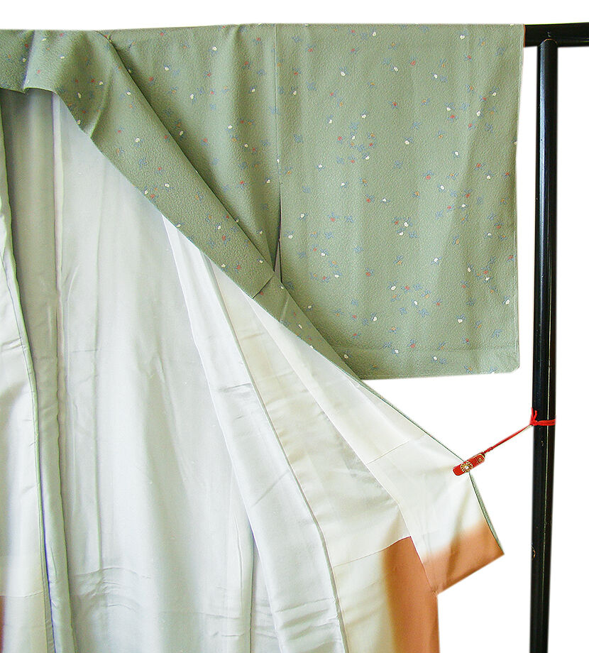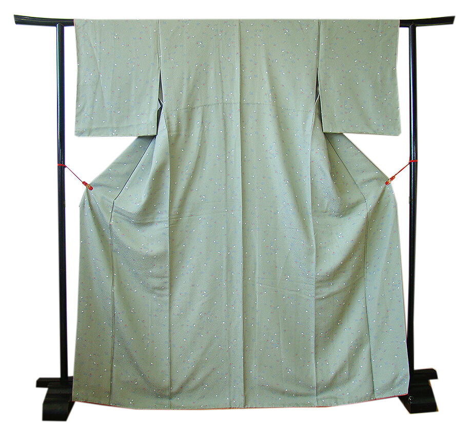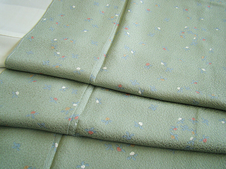 きものしらゆり 身丈163cm 裄66cm 10~5月 極上ちりめん地 山葵色 小紋 正絹 身長154cm~160cmの方に最適 B043 收藏
