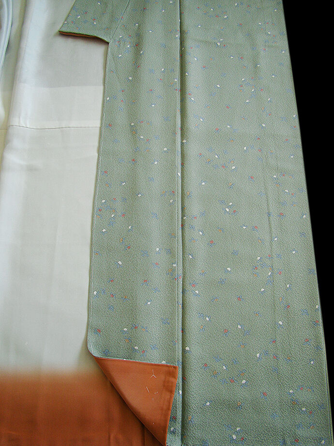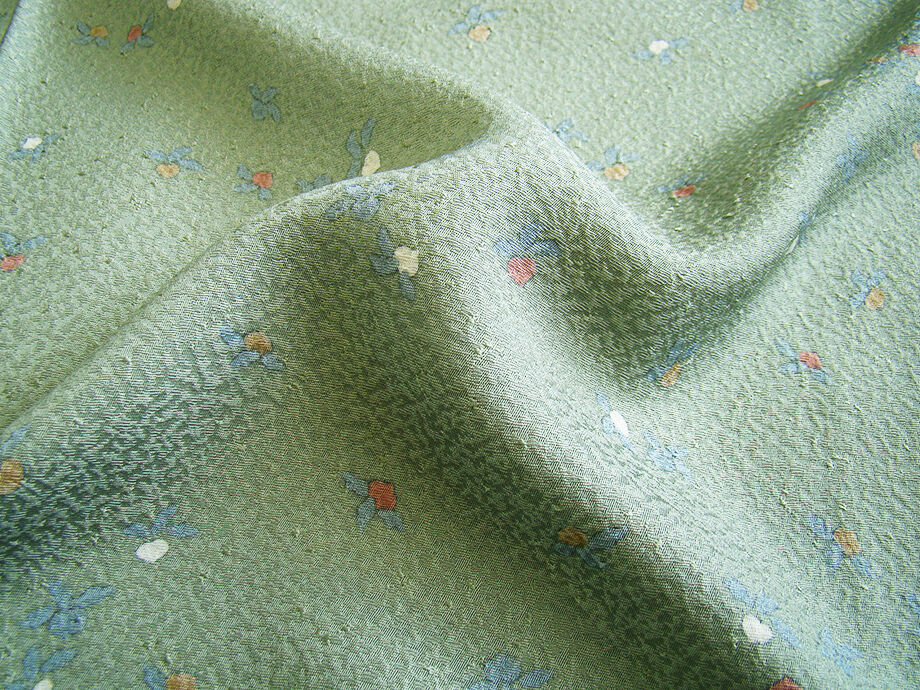 | 商品説明 | こちらのお品は「袷」ですので10月から5月までお召頂ければと思います。 とてもしなやかな手触りの着心地良い重めのぽってりとした極上ちりめん地の変り織の生地、 山葵色地に赤、白、水色の染柄、 八掛はときがら茶色(正絹)、幅広い年代の方にお召頂けます。 |