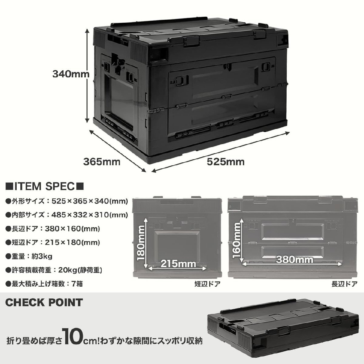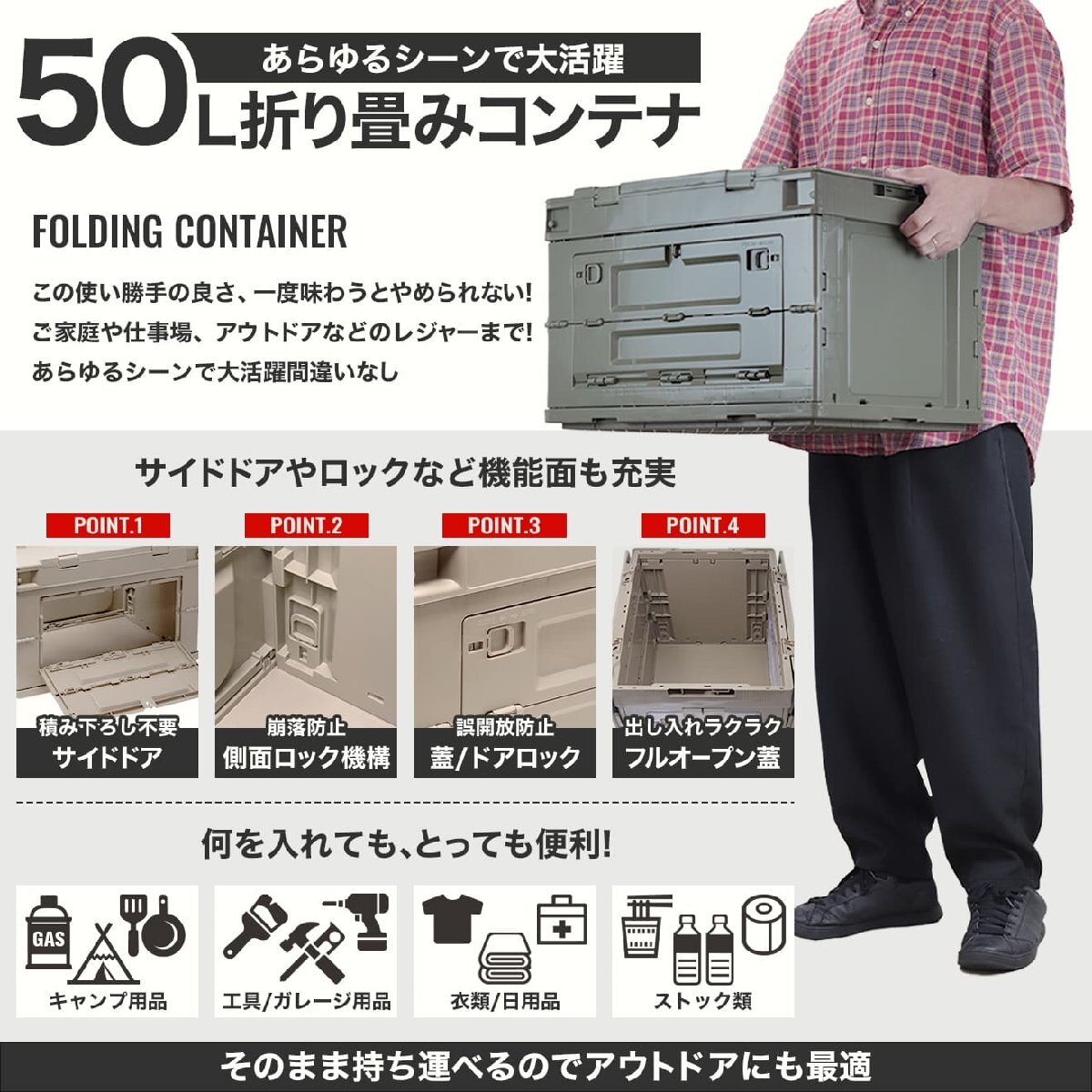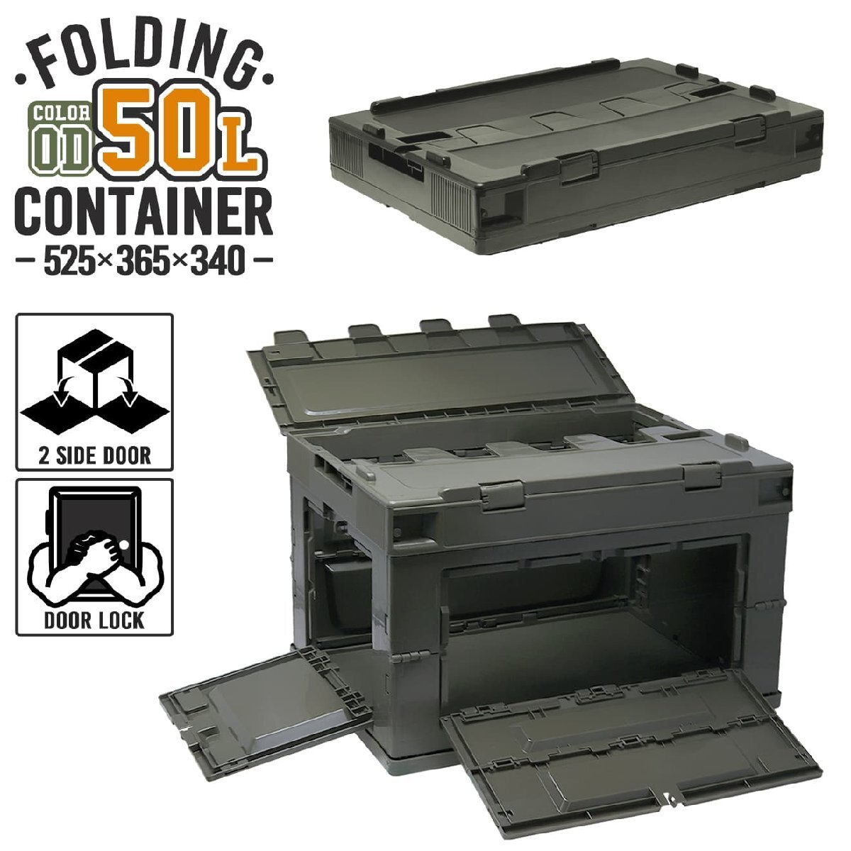 FDC0004O 折り畳みコンテナ 50L 中窓2箇所付(長辺1&短辺1) 折りたたみコンテナ 收藏