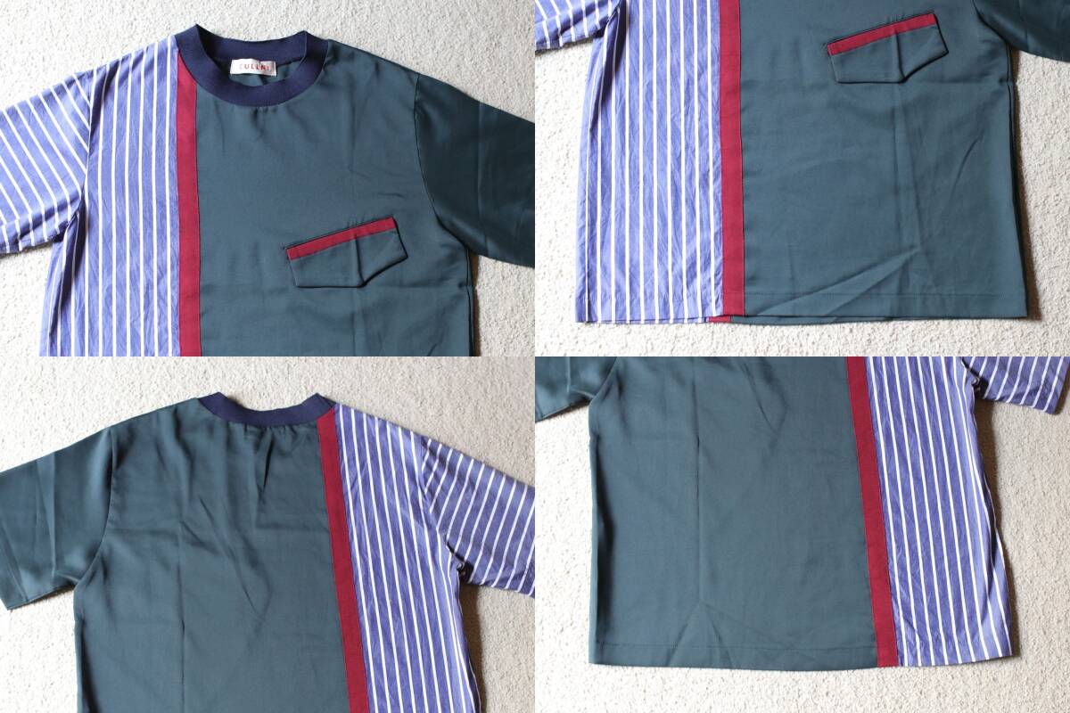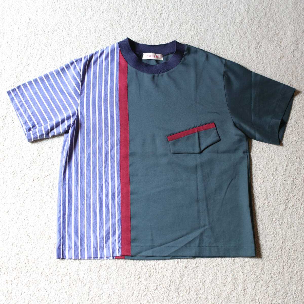 【送料無料】CULLNI アシンメトリーカットソー サイズ1 半袖 ブルーストライプ グリーン クルニ サイズ1相当 クーポン利用にも 18-SS-023 收藏