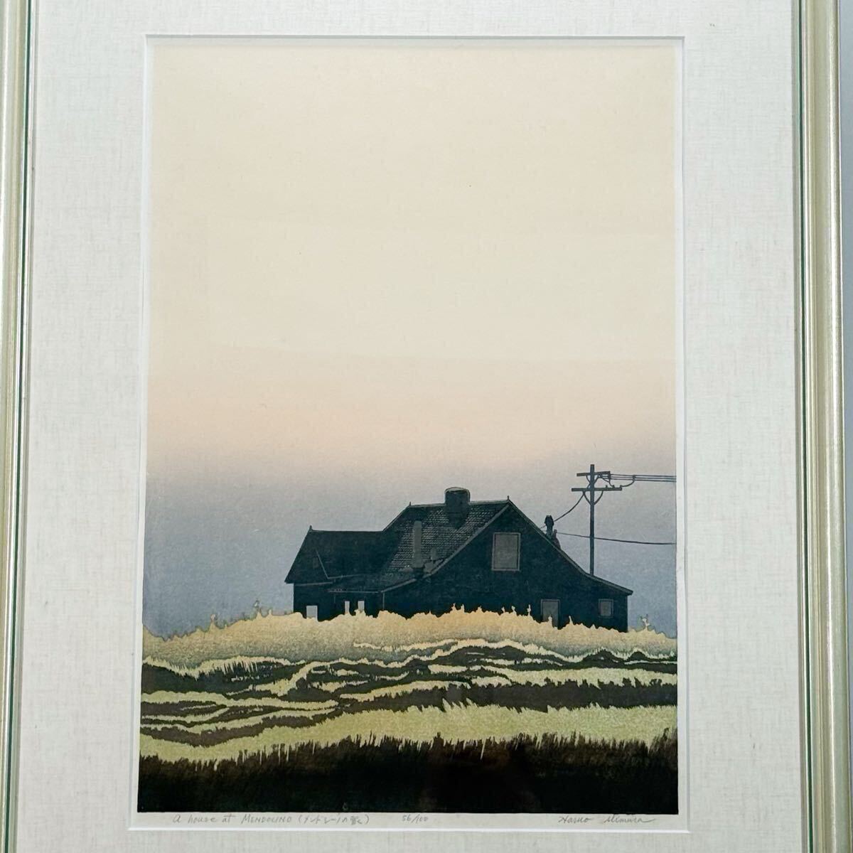【真作保証】大型 木版画 三村治男 メンドシーノの家 額装 タトウ箱 共袋 直筆 サイン 絵画 絵 美術品 風景画 肉筆 額装 收藏