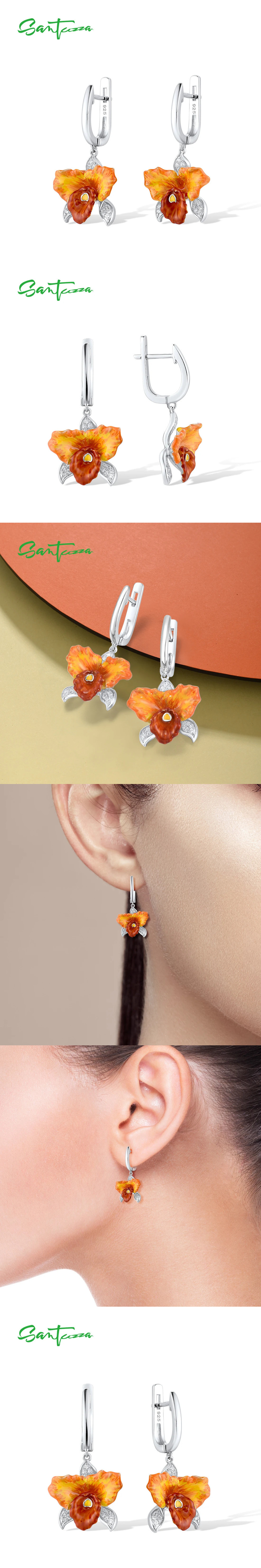 ピアス 花 フラワー オレンジ シルバー フルーツ リング ラン 果物 レディース リアル 925 スターリング 收藏