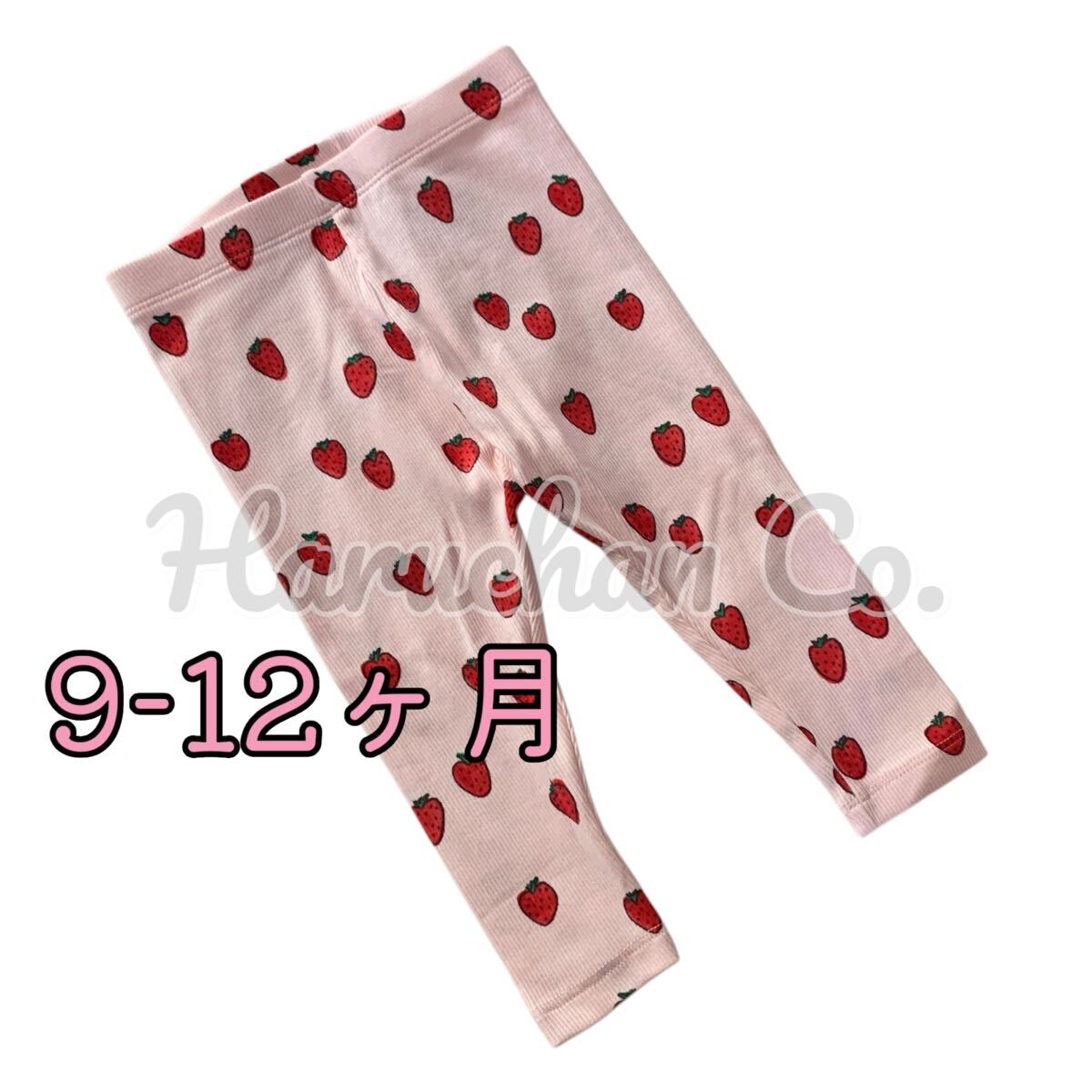 ●未使用●9-12ヶ月 ベビーピンク いちご柄 リブ レギンス 收藏