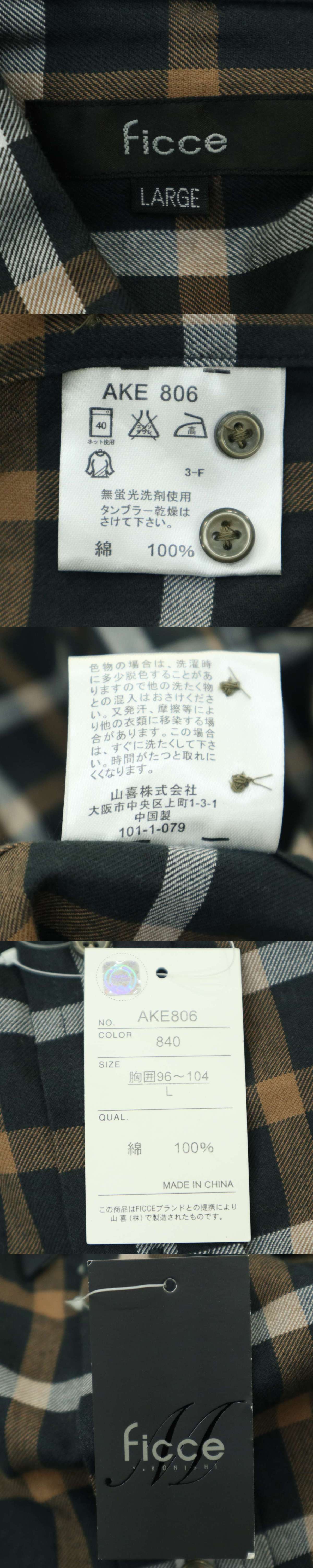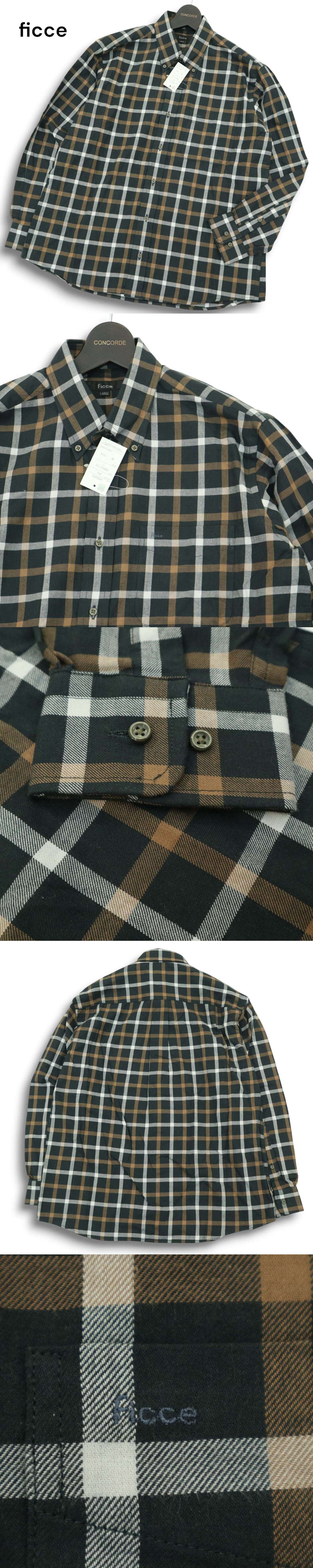 【新品 未使用】 ficce フィッチェ ヨシユキコニシ ドン小西 ロゴ刺繍★ 長袖 ボタンダウン チェック シャツ Sz.L メンズ 收藏