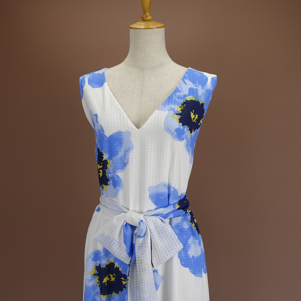 送料230円 新品アンクライン 19号 白 水色 花柄 Vネック リゾート ロング ワンピース ドレス ノースリーブ 凛26N0901 收藏