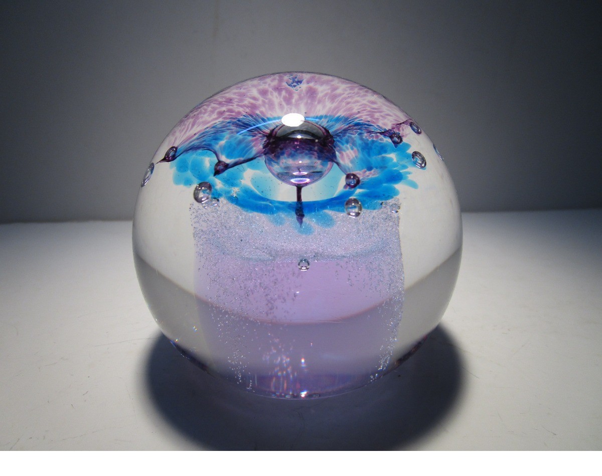 ケイスネスのペーパーウエイトの中ではミドルサイズのほどよい大きさで色合い、デザインともに完成度の高い美しい作品です。光源、見る角度で様々な表情を見せてくれる、単体で飾っておくだけでも楽しめる存在感のある品物なので お好きな方はぜひご検討ください。
