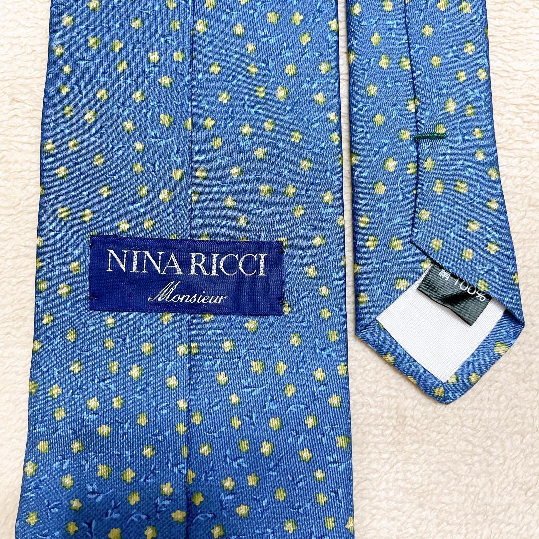 鮮やかなブルー地に小花柄が散りばめられたNINA RICCIのネクタイ♪
