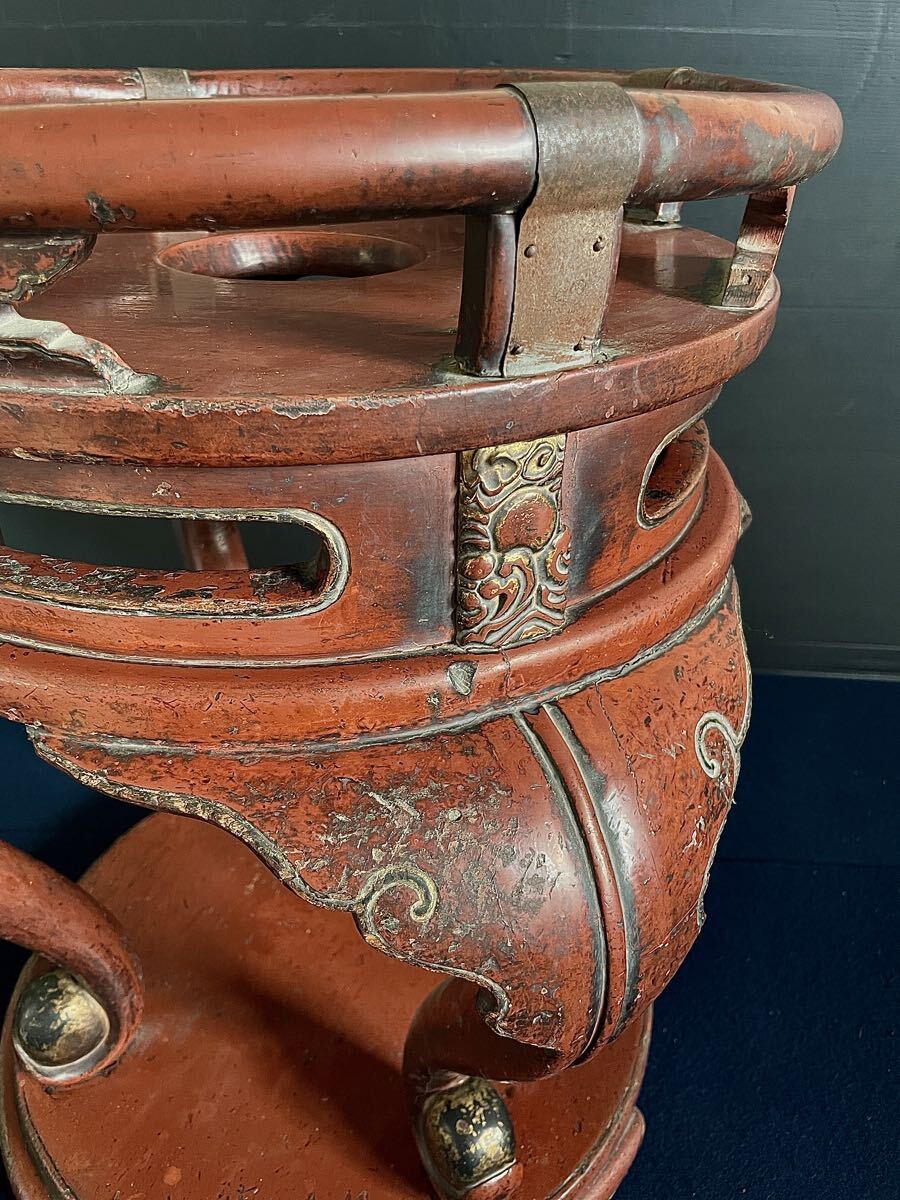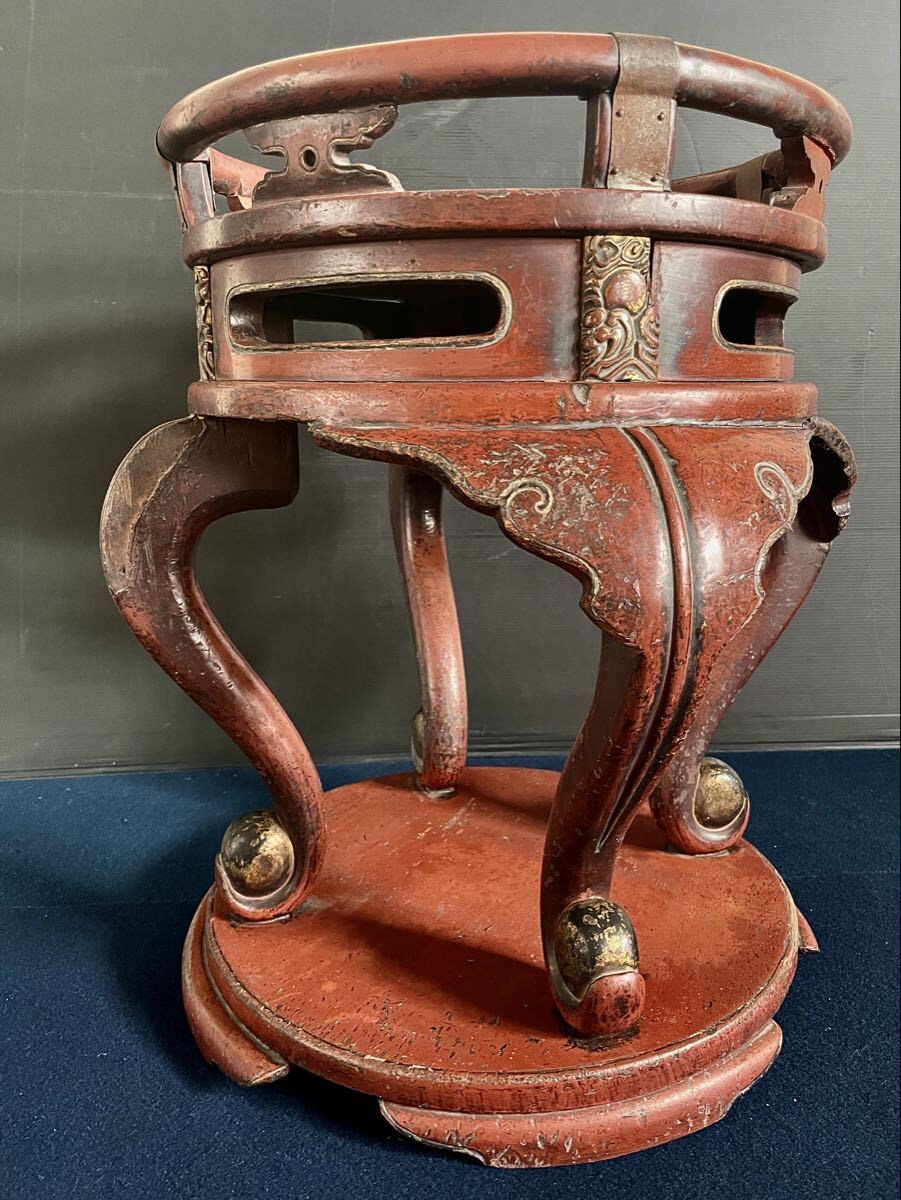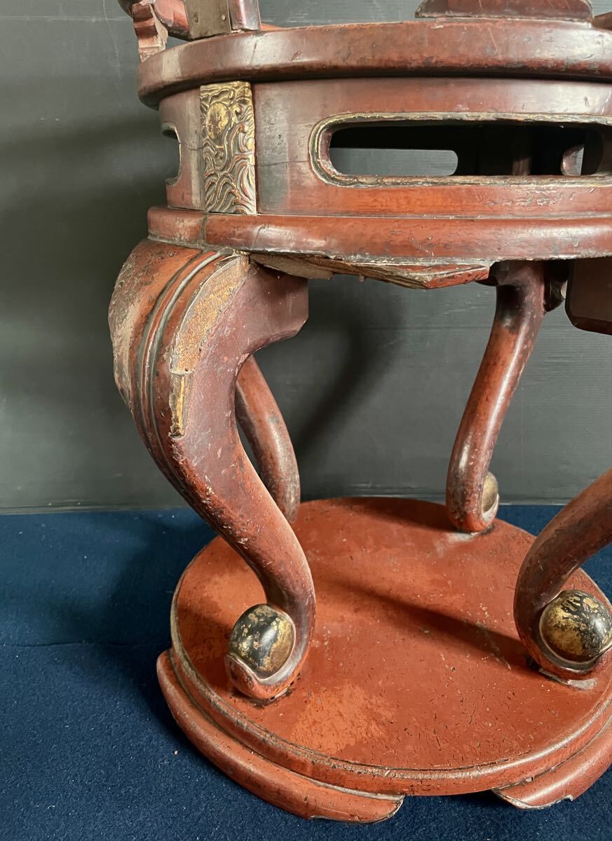 「母」 中国古玩 丸金台 丸形 磬子台 尺三寸 朱漆 寺院 仏具 (あ⑦) 收藏