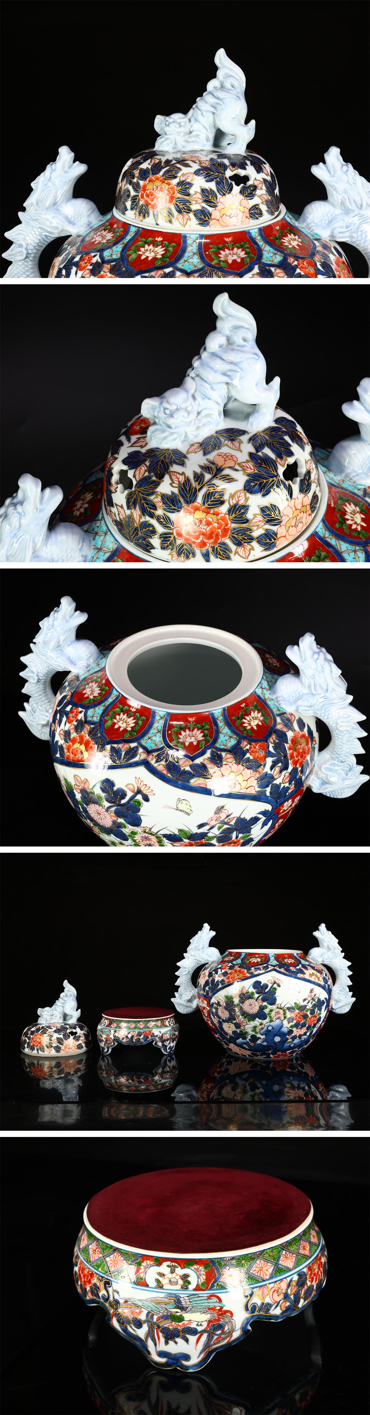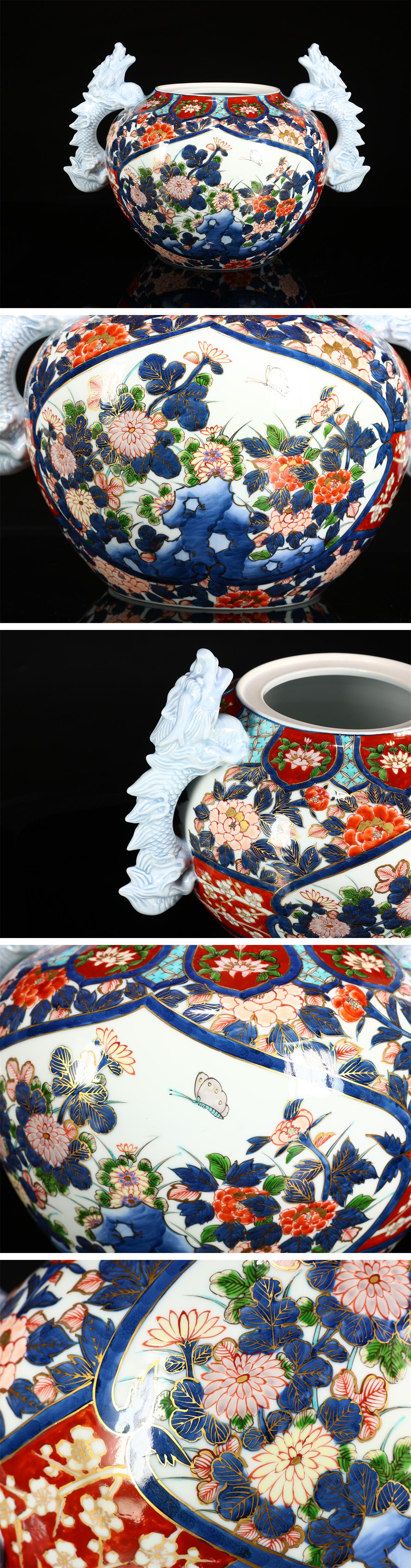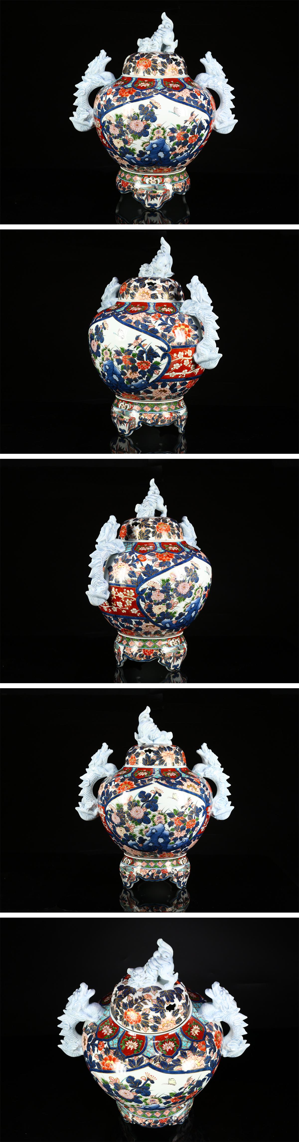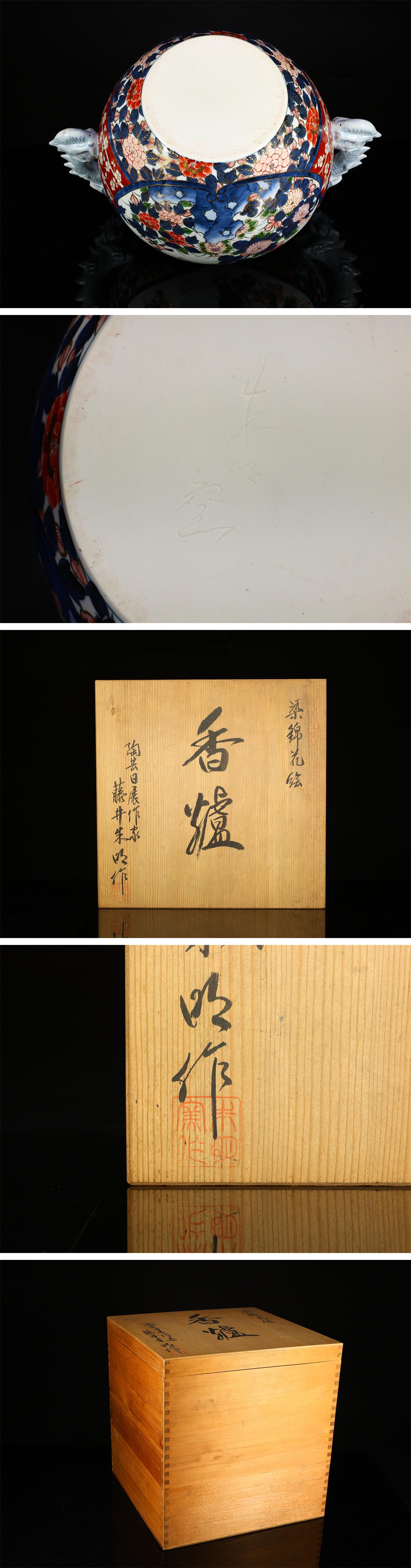 【吉】CM818 日展作家 有田名工 【藤井朱明】 染錦花紋 三段 大香炉 高48㎝/共箱付 美品Ng! 收藏