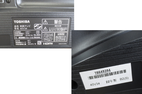 2022年製 40V34 東芝 ハイビジョン液晶レグザ 液晶テレビ 40インチ ネット動画 40型 外付けHDD TV 札幌 北20条店