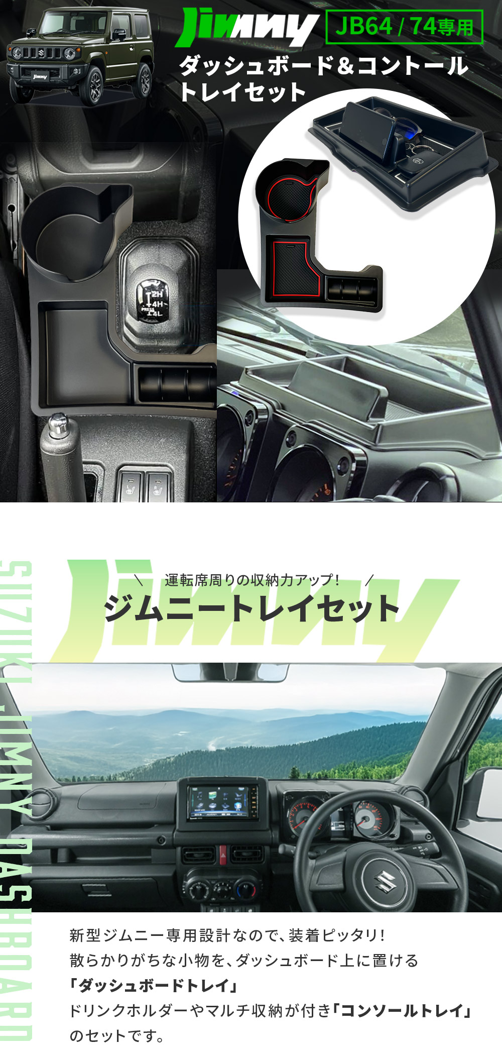 ダッシュボードトレイ&コンソールトレイセット (ブラック) ジムニー JB64W ジムニーシエラ JB74W スマホスタンド 滑り止め 小物入 收藏