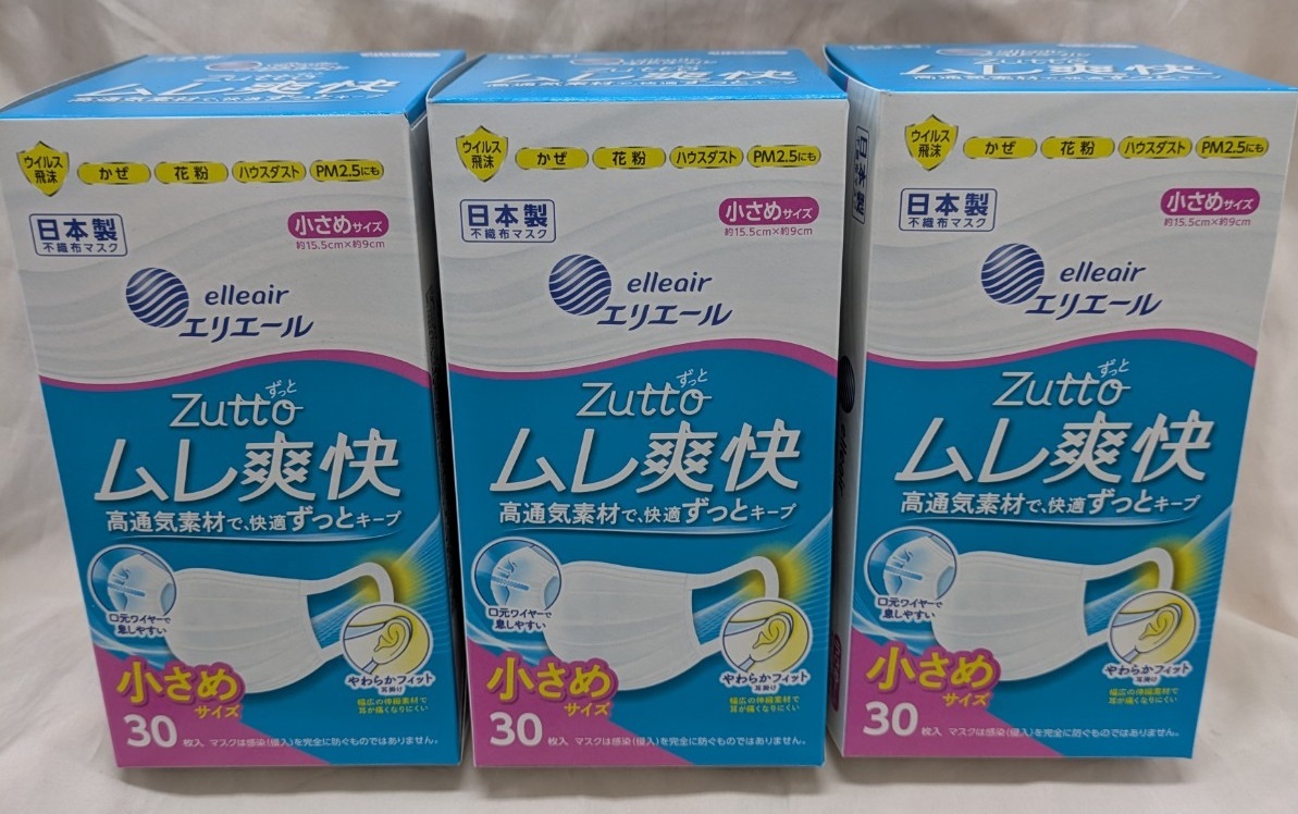 ◆商品名:エリエール Zutto ムレ爽快 小さめサイズ 30枚×3点