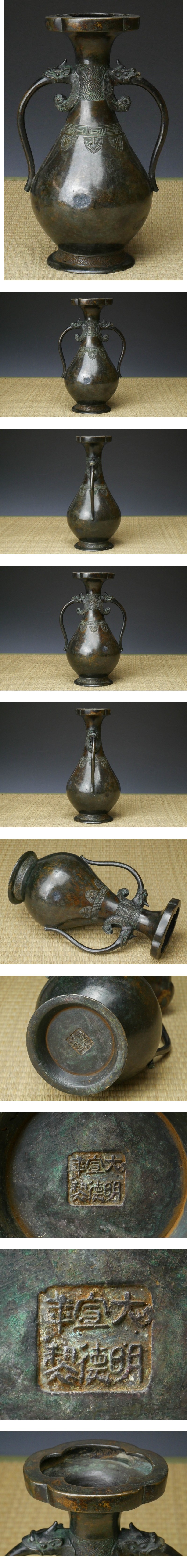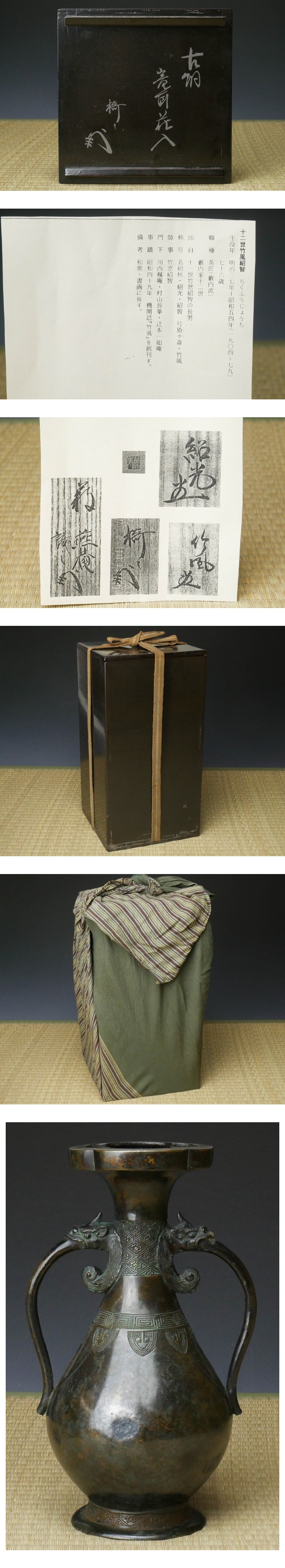 【 幸 古寺の蔵 】今より600年前◇古銅 龍耳 花入 藪内流 竹風箱◆当店保証 中国宣徳年製 茶道具『茶人の言葉』 收藏