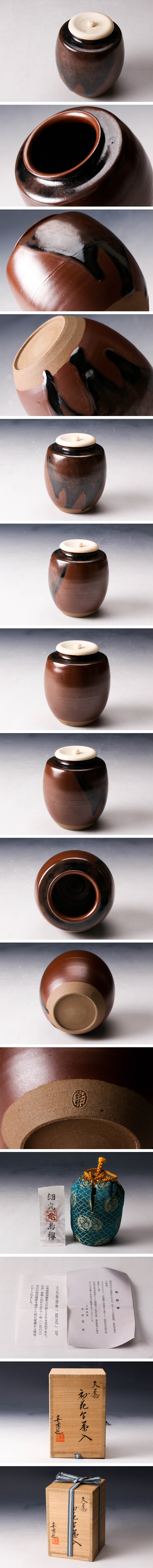 【佳香】木津喜楽 大名物 初花写茶入 共箱 仕覆(細丸龍鳥襷) 栞 茶道具 本物保証 收藏