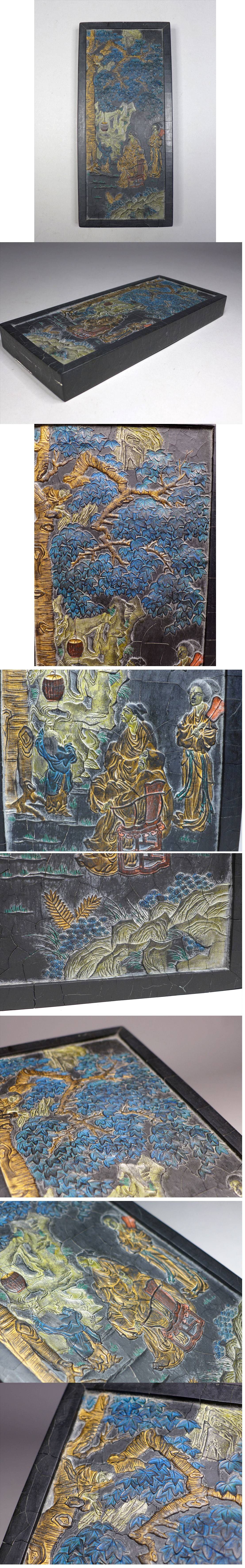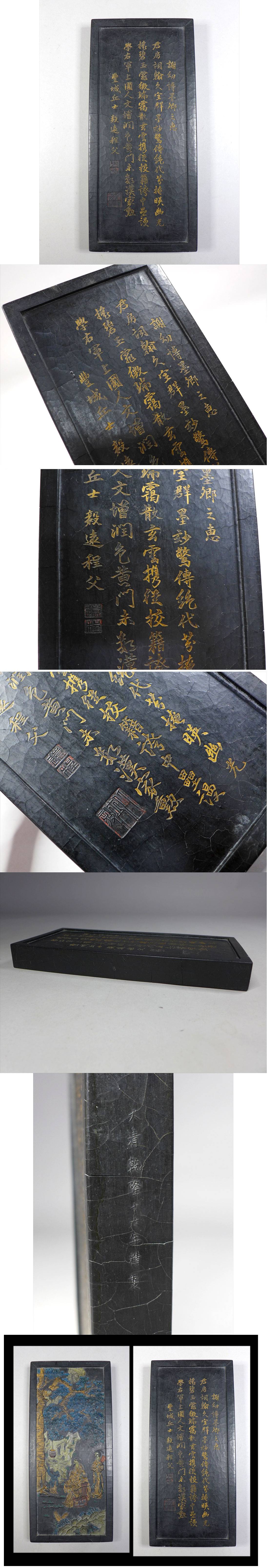 ●中国古玩 唐墨 巨大墨2685g 毅遠程父 大清乾隆十六年精製銘 賢人唐子図 /中国古墨 書道具 文房具 文房四宝 時代墨 收藏