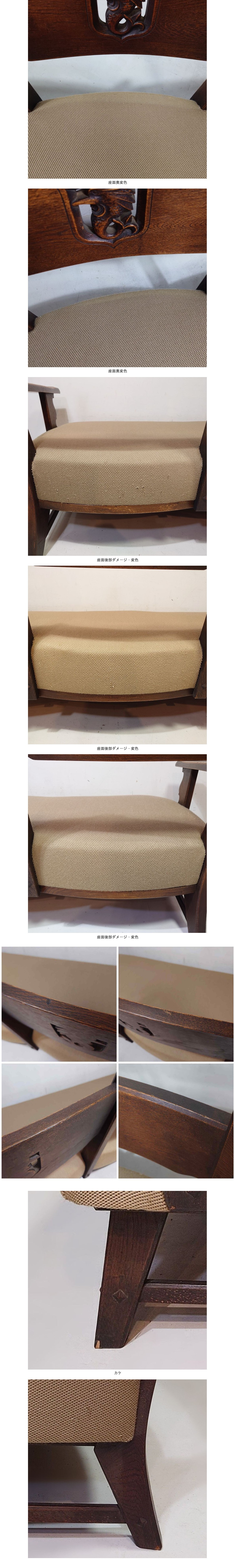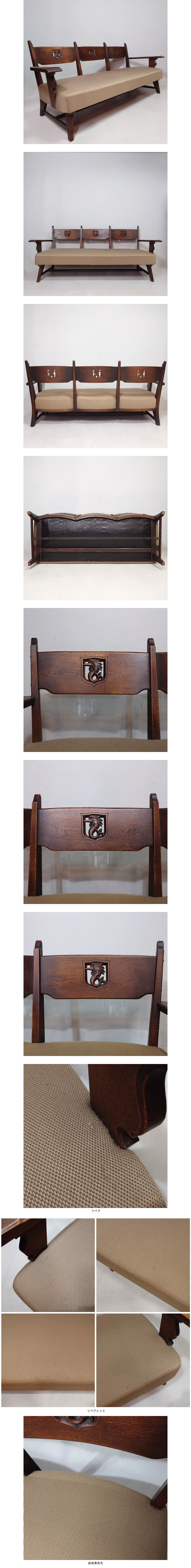 神戸 永田良介商店 ナラ材 タツ型ソファ 楢 オーク 無垢材 洋家具 肘掛け長椅子 30万 ファブリック アンティーク調 3人掛け 3シーター 收藏