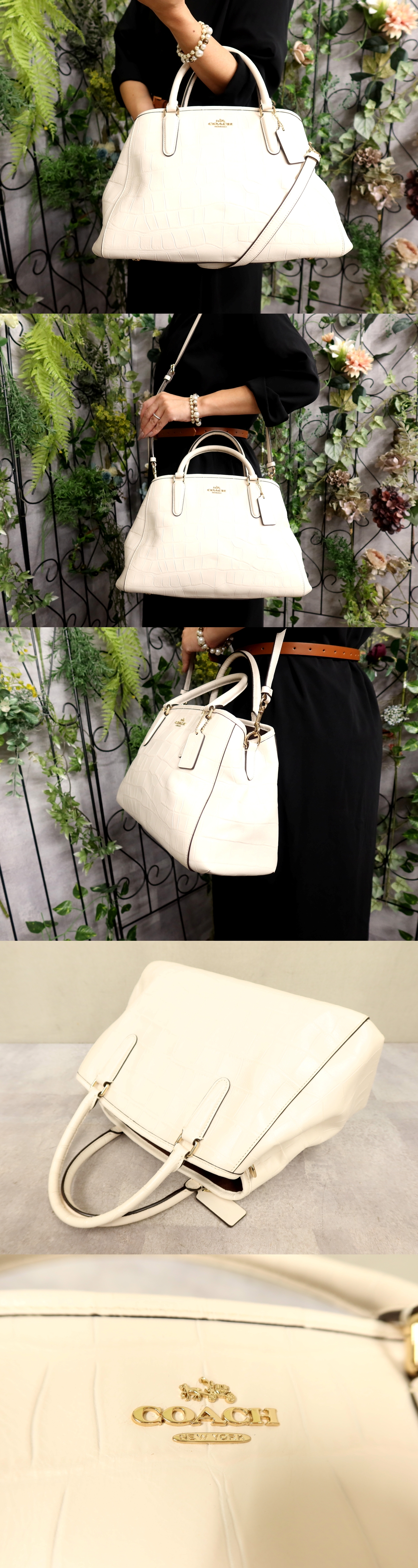 ●超美品●COACH コーチ●ロゴ金具●F55927●クロコダイル 型押し カーフ レザー●2way ハンド バッグ●アイボリー●G金具●B5●Js61092 收藏