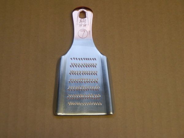 | ◎新潟県燕市の職人さんが一つ一つ丁寧に造っています。 ◎純銅製のおろし金です。ステンやアルミのおろし金と違って同じ金属でも 銅は比較的柔らかいので 素材を痛めにくく、美味しくおろすことができます。 ◎両面に目立が施されているので、お好みによって目の粗さを調整できます。 (粗い・細かいと使い分けできます) ◎7号サイズでは全長は約120ミリ 幅は約60ミリになります。 | ||