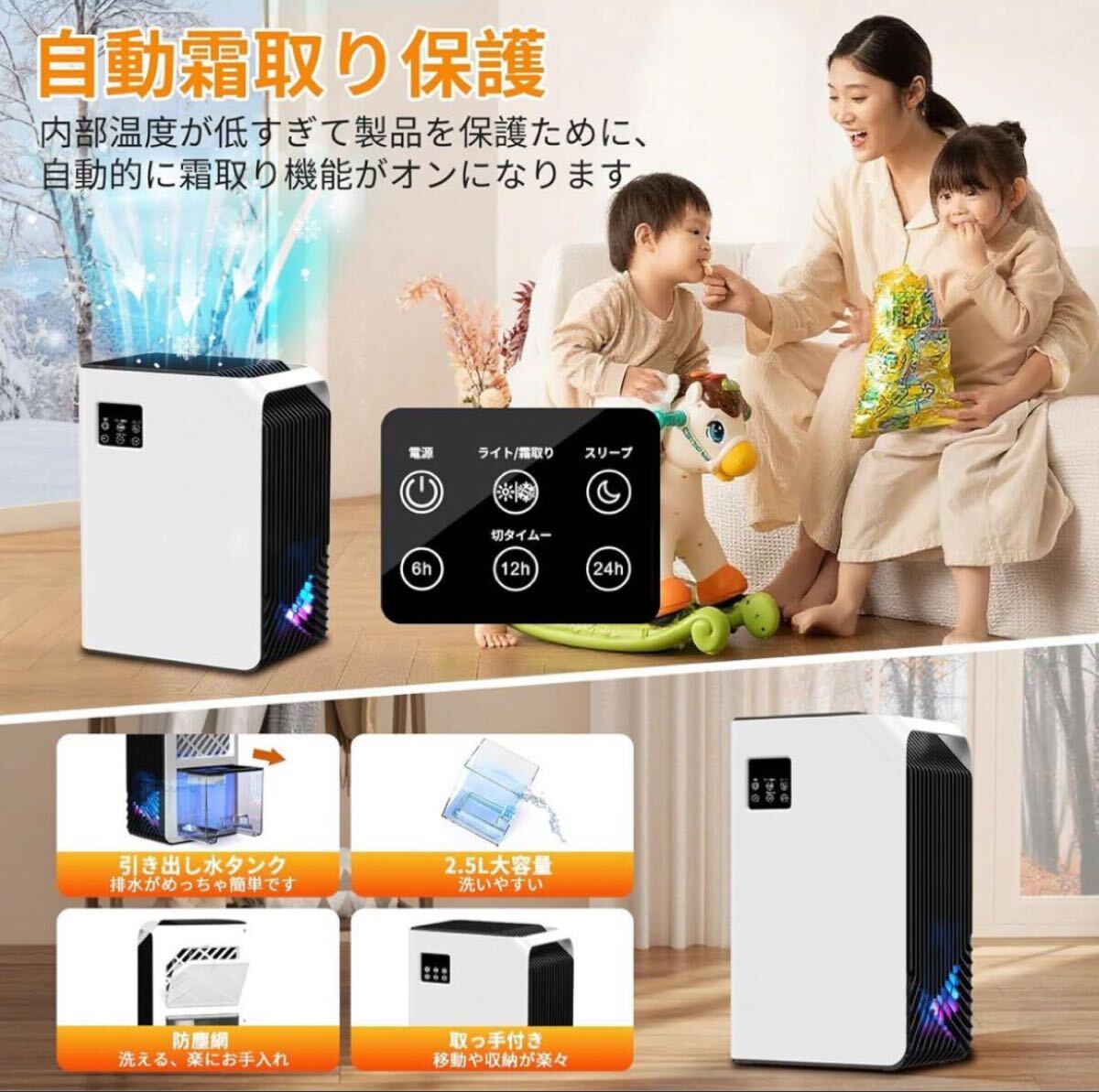 60 除湿機 2.5Lタンク タイマー付き コンパクト 省エネ 強力除湿 LED 收藏