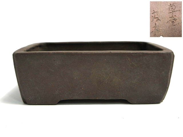 草庵 長方鉢 間口約5.5×8.3cm 小品盆栽鉢【説明欄に詳細写真有り】の出品です。
