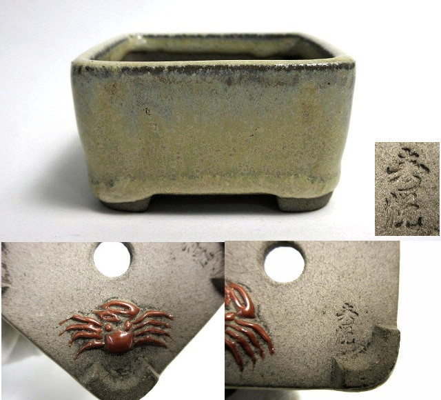 寿悦 カニ 蟹 四方鉢 間口約5.5×5.5cm 小品盆栽【説明欄に詳細写真有り】の出品です。
