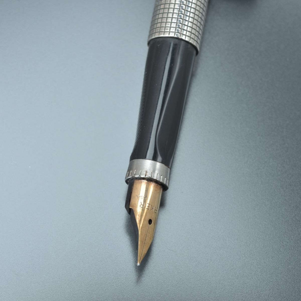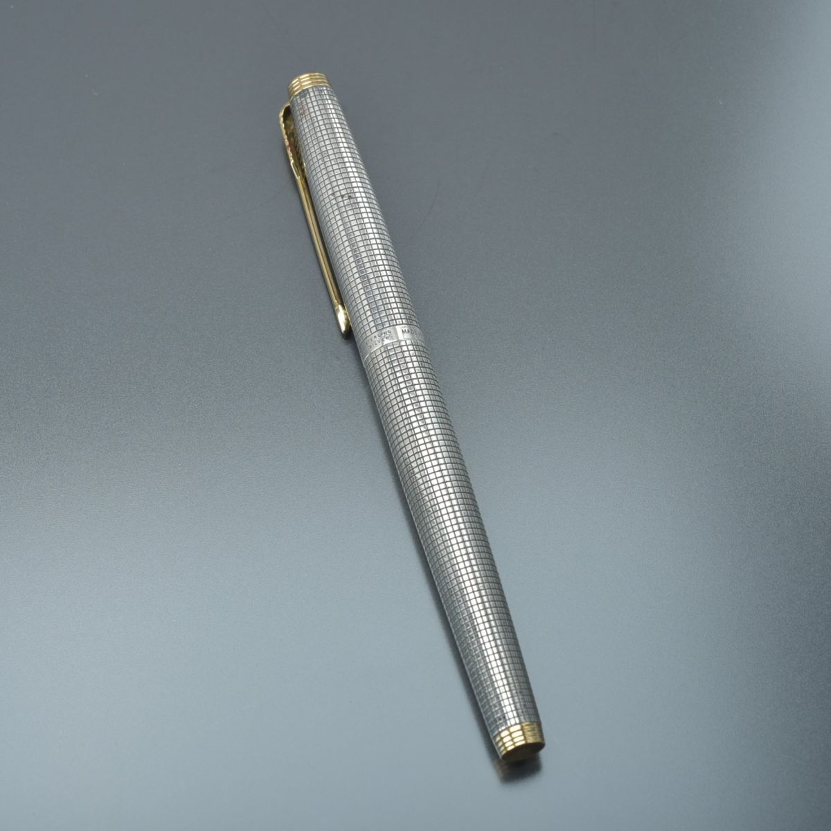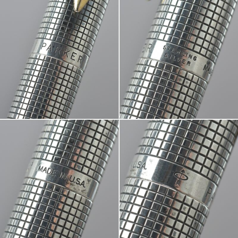 美品 PARKER SV 万年筆 ペン先14K/65 STERLING 0点刻印 フラットトップ 初期型 シズレ 格子柄 スターリングシルバー パーカー #N※C710 收藏