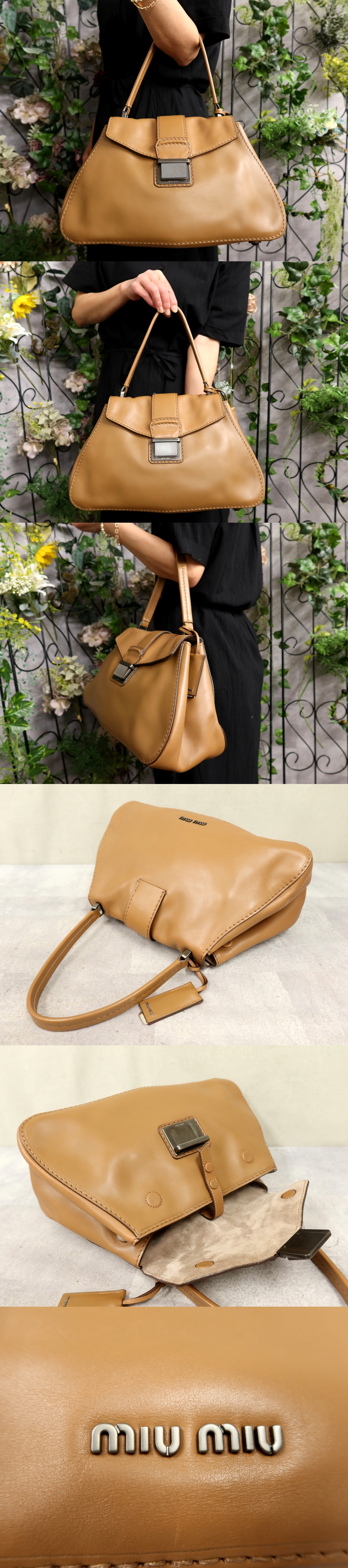 ●超美品●miu miu ミュウミュウ●ロゴ金具●フラップ●カーフ レザー 本革●ハンド ワンショルダー バッグ●ブラウン●B5 かばん●Js57636 收藏